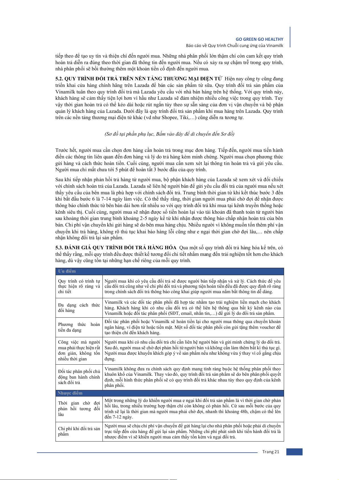 nhận trả mọi loại phí liên quan đến quy trình đổi trả sản phẩm, đồng thời gửi kèm voucher ưu đãi cho lần mua Trang 20 GO GREEN GO HEALTHY