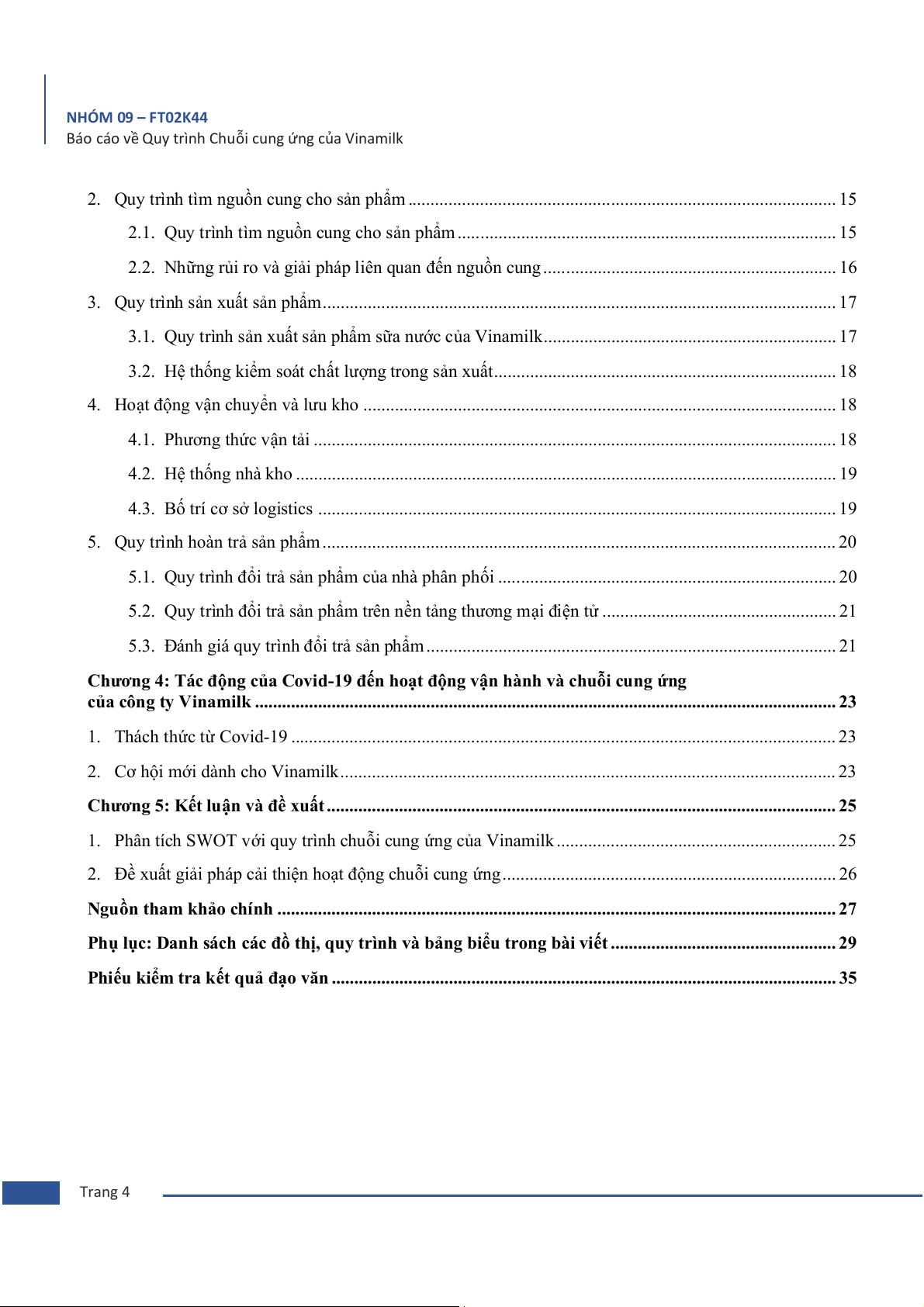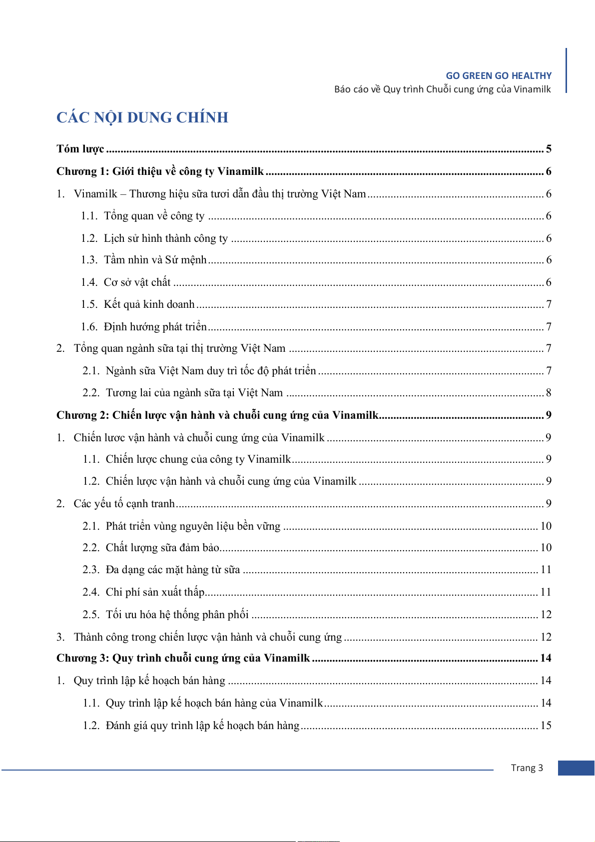Báo cáo về Quy trình Chuỗi cung ứng của Vinamilk CÁC NỘI DUNG CHÍNH