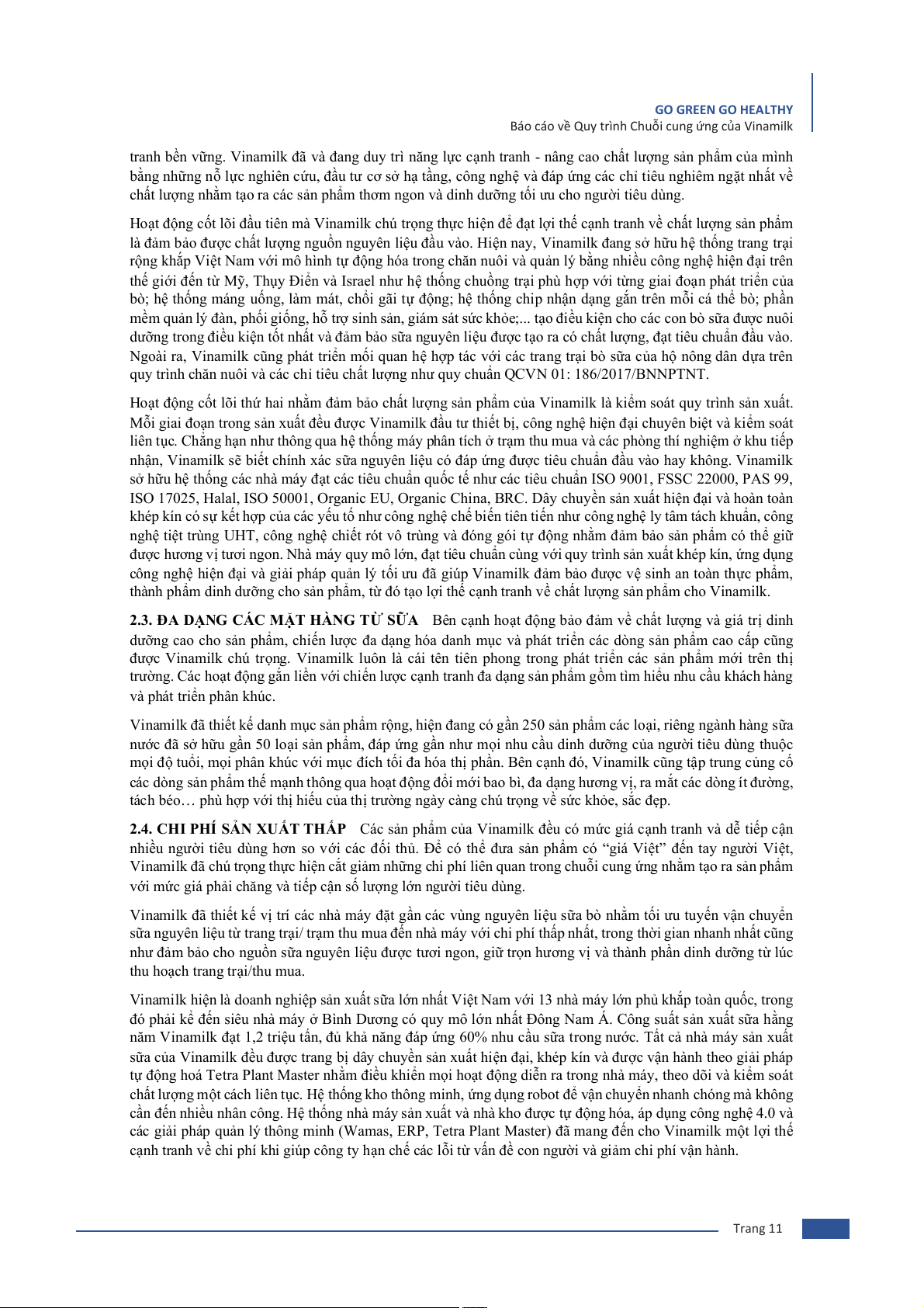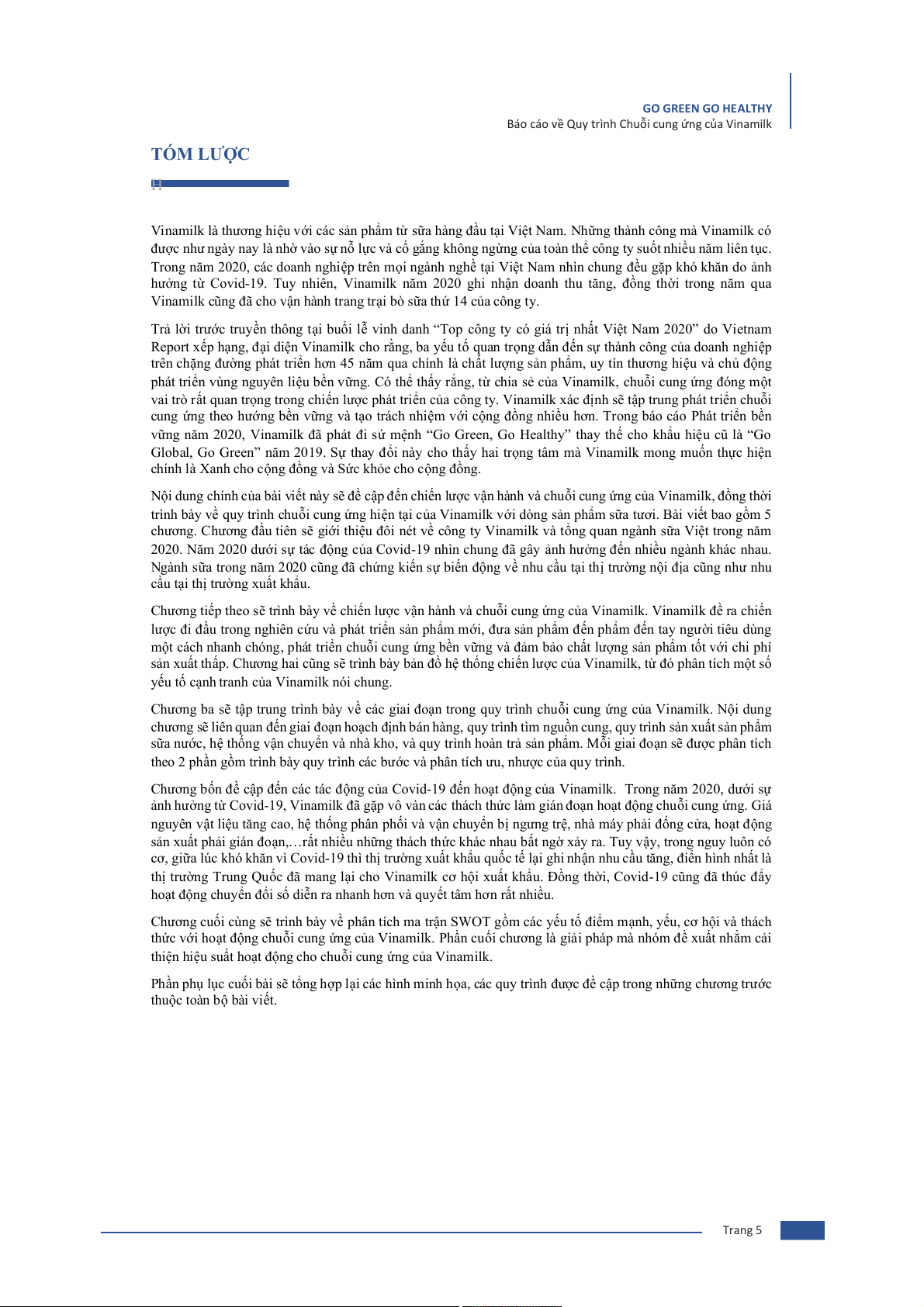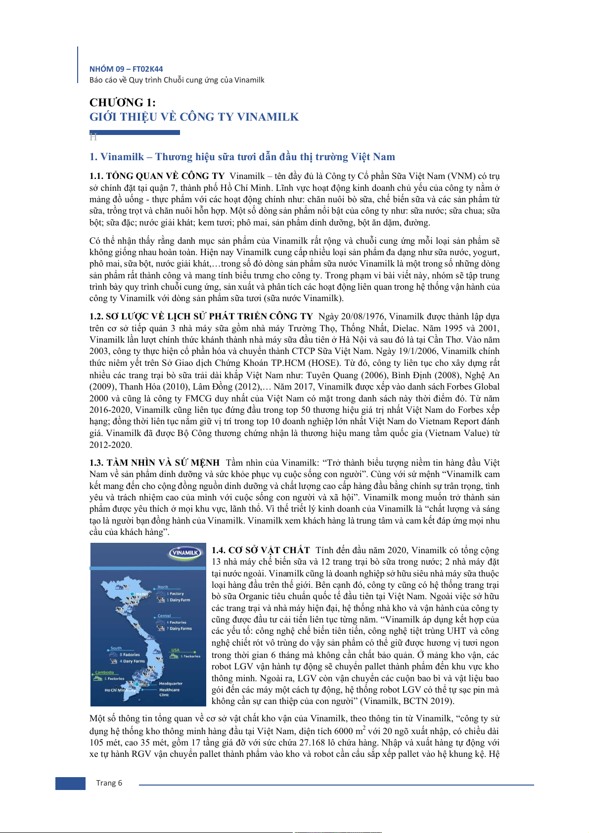 Báo cáo về Quy trình Chuỗi cung ứng của Vinamilk TÓM LƯỢC H