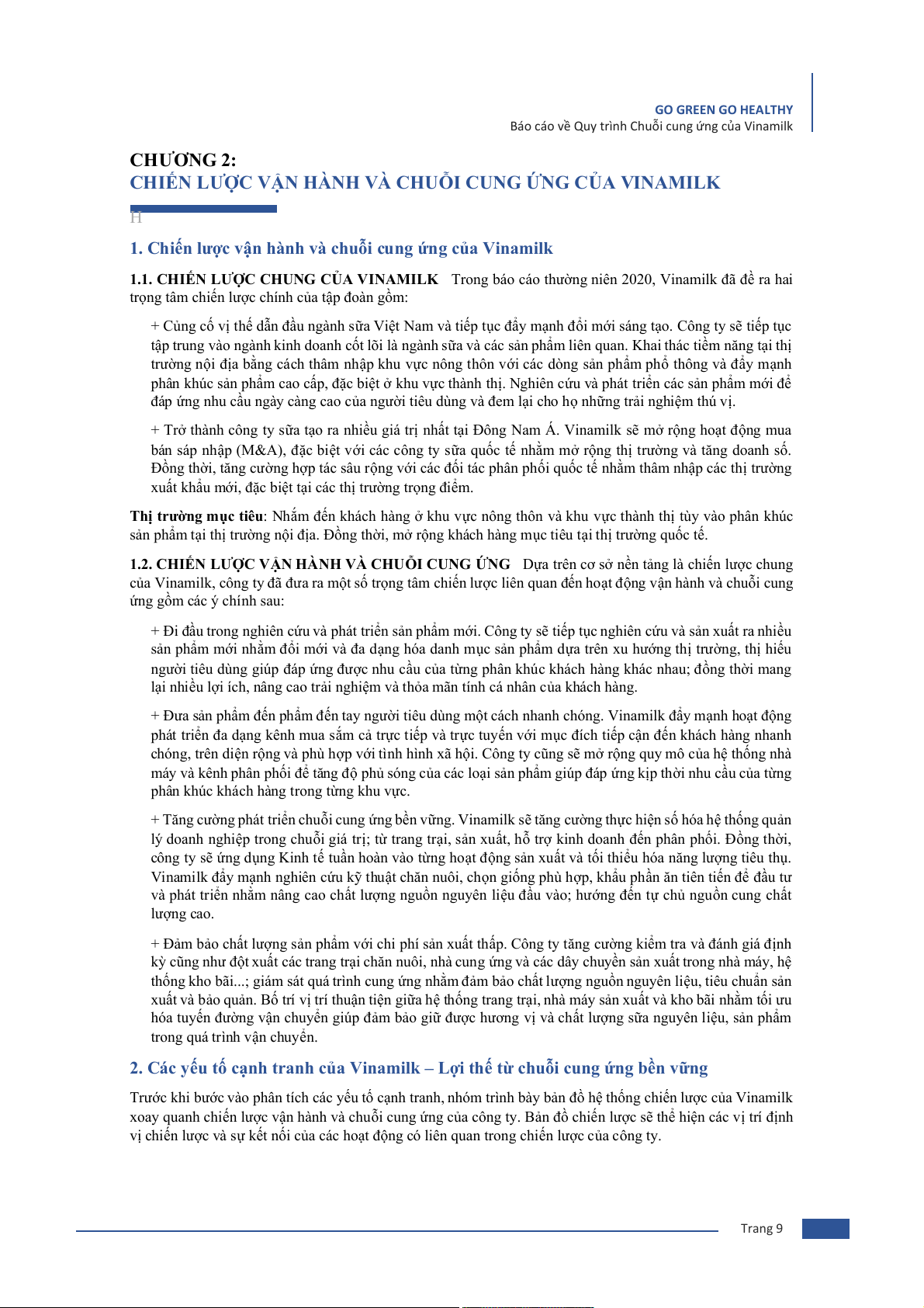 Chương 2: Chiến lược vận hành và chuỗi cung ứng của Vinamilk ......................................................... 9