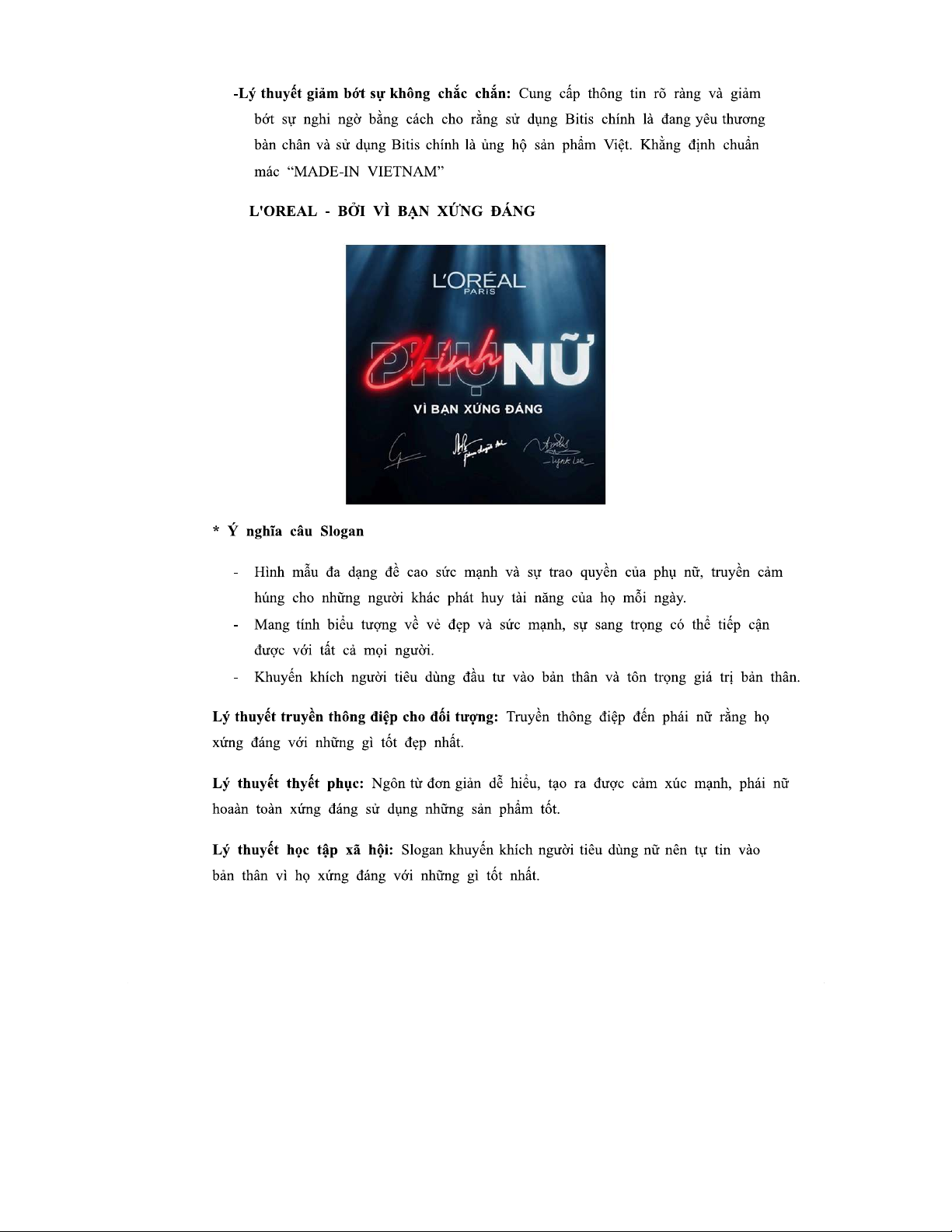 PHÂN TÍCH SLOGAN - Quốc tế học: BITI'S & L'OREAL