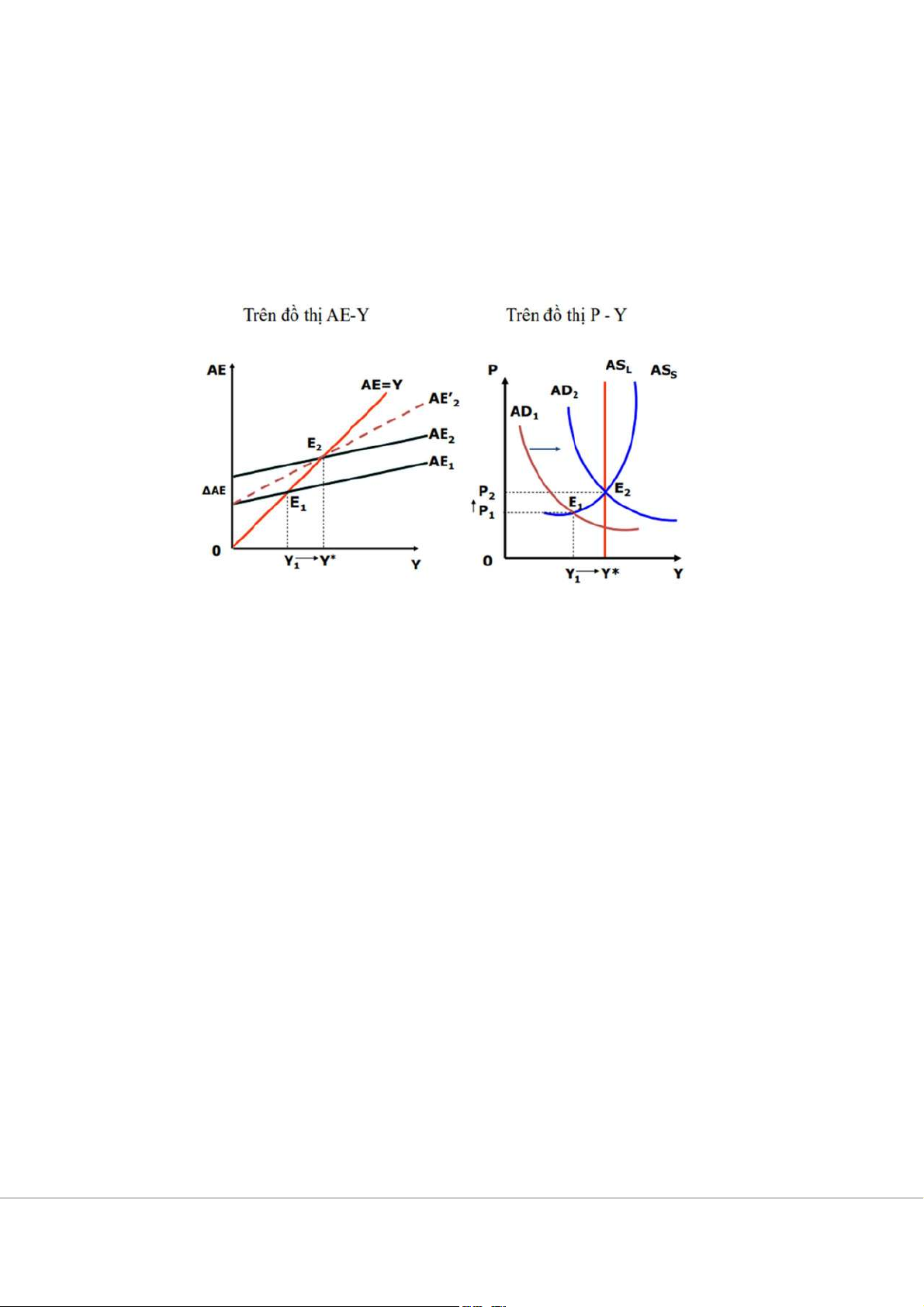xuống dưới (từ 𝐴𝐸đến 𝐴𝐸), đưa mức sản lượng cân bằng đến 𝑌∗. Từ đó, cả hai biện pháp