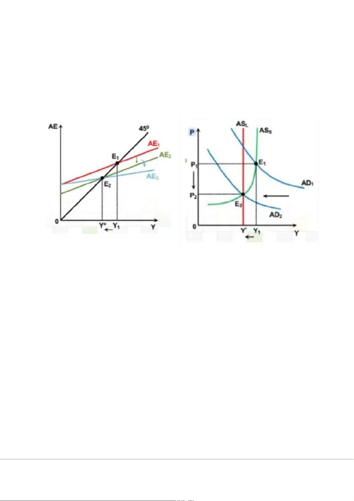 bằng dịch chuyển từ 𝐸 xuống 𝐸, sản lượng cần bằng giảm từ 𝑌 xuống 𝑌∗, giá giảm từ 𝑃