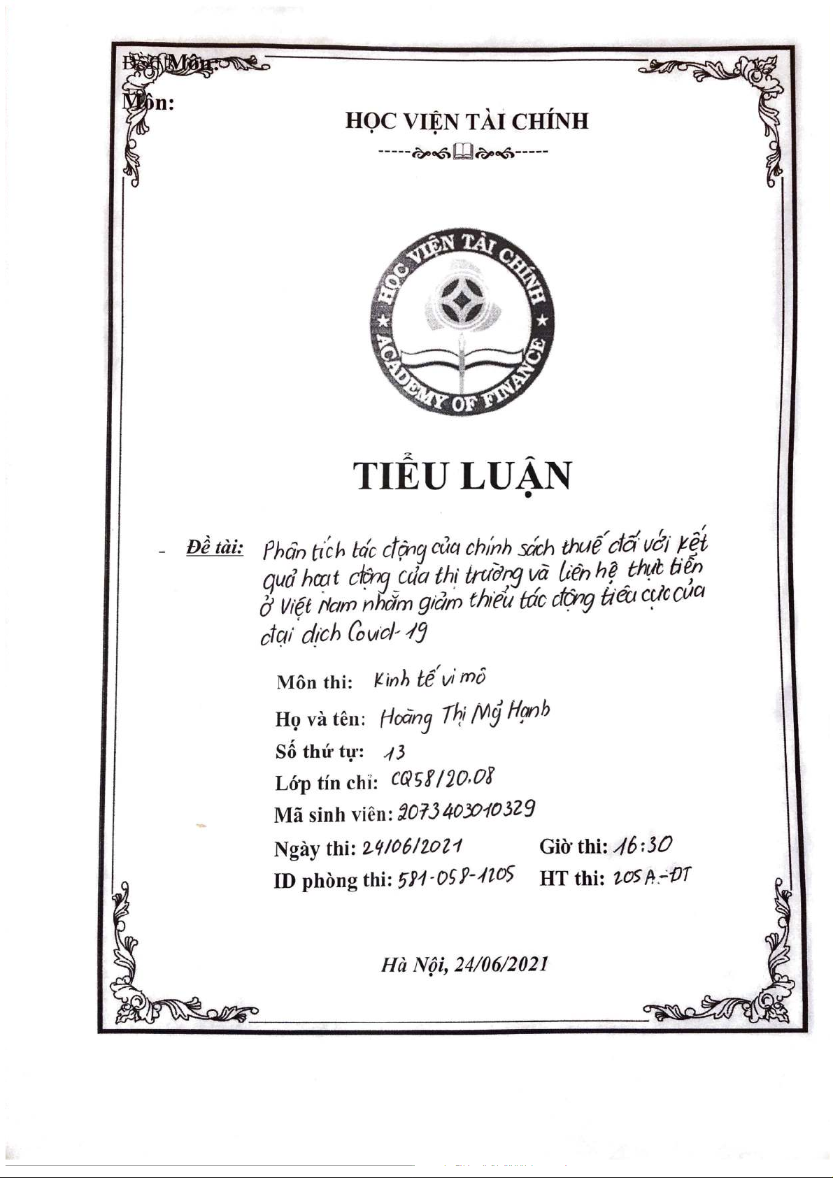 Phân tích tác động của chính sách thuế đối với kết quả hoạt động của thị trường và liên hệ thực tiễn ở Việt Nam nhằm giảm thiểu tác động tiêu cực của đại dịch của đại dịch COVID-19 | Tiểu luận môn Kinh tế vi mô 1 | Học viện Tài chính