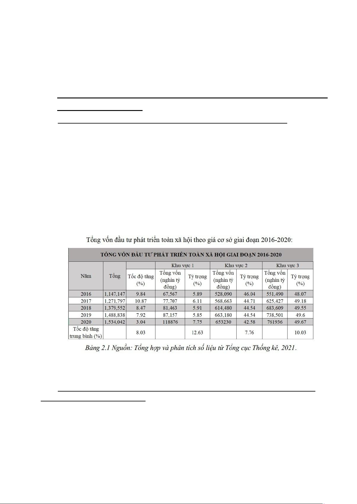 2.1. Tình hình đầu tư phát triển tại Việt Nam giai đoạn 2016 - 2021