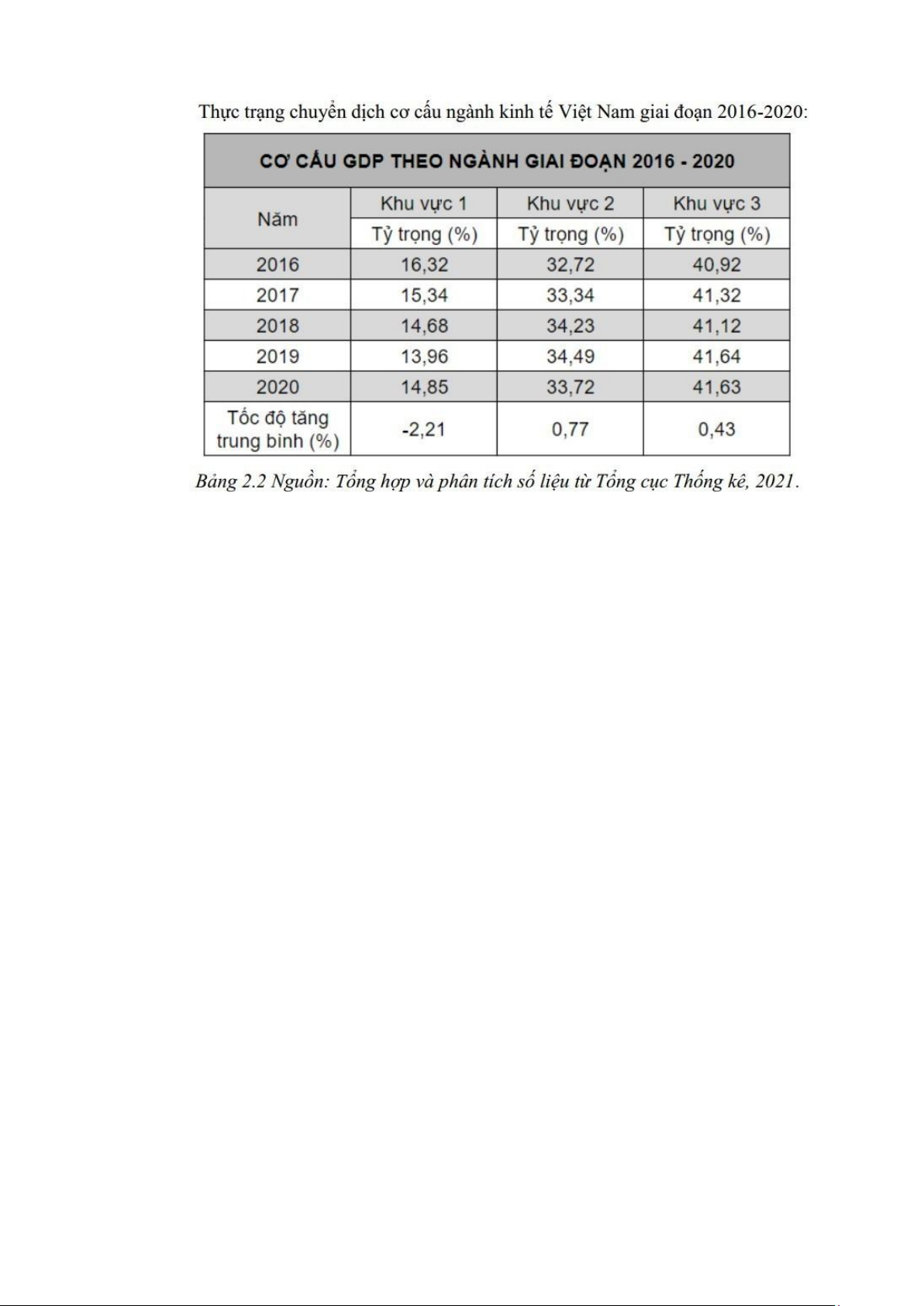 ảnh hưởng đến chuyển dịch cơ cấu ngành kinh tế Việt Nam theo GDP giai đoạn 2016-