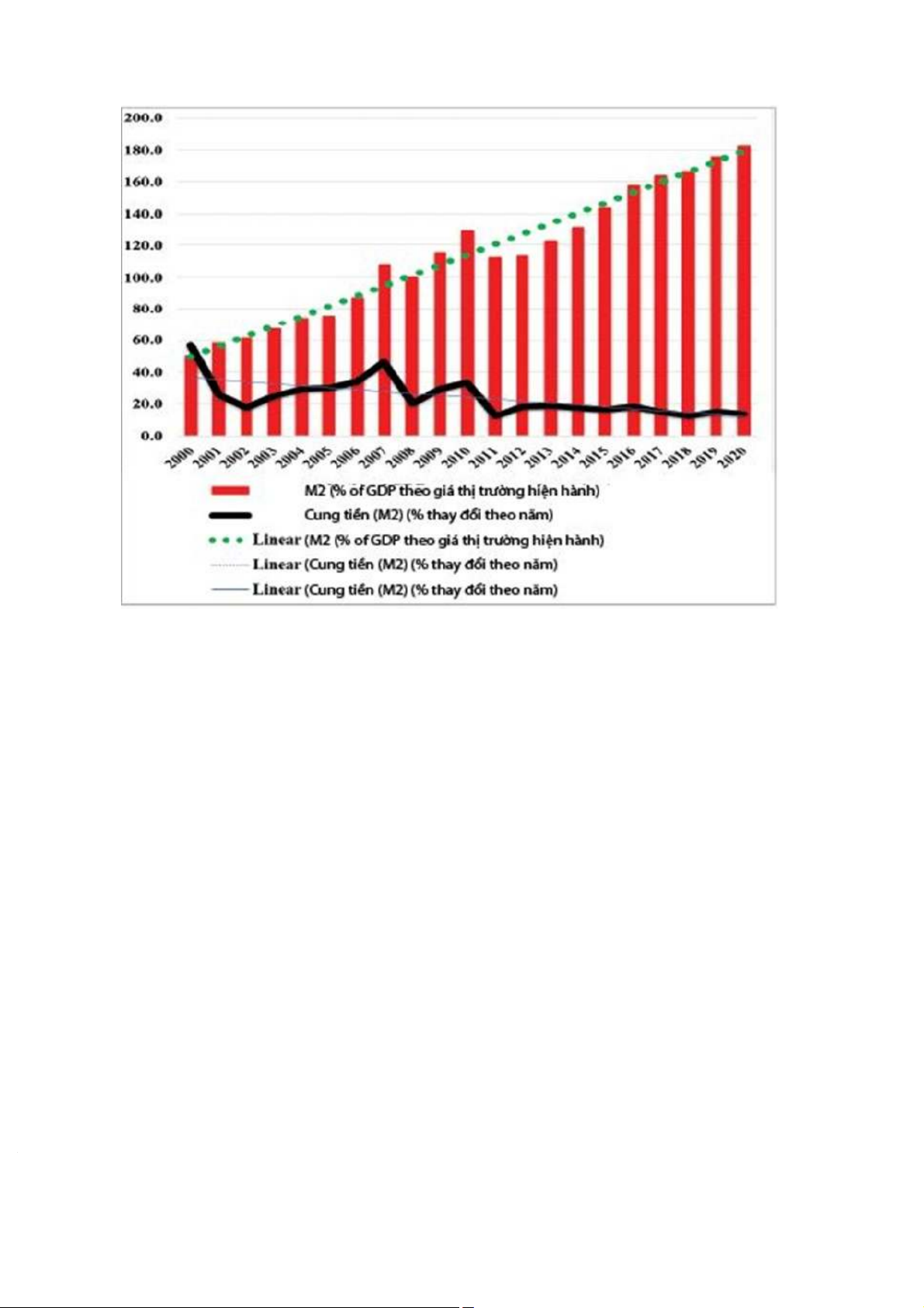 mức cung tiền của Việt Nam trong những năm gần đây và cho biết sự thay đổi này tác