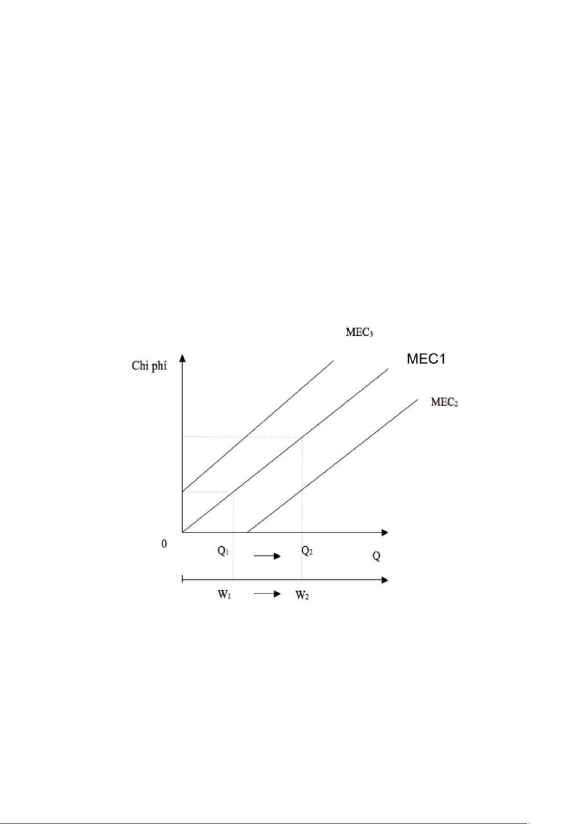 Đường MEC2, xuất phát từ trục hoành hàm ý là với một mức sản