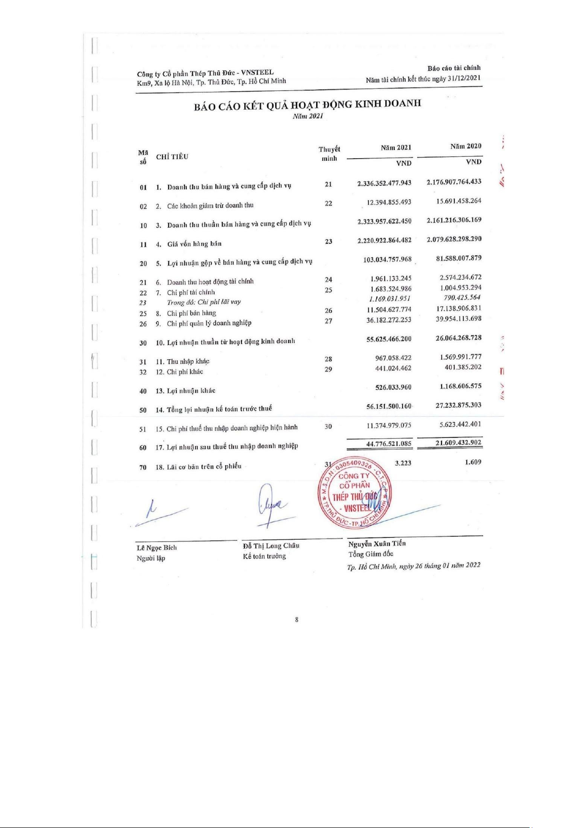 năm 2020 khả năng đảm bảo thanh toán nợ bằng tài sản của VNSTEEL là rất cao. Đến năm 2021 tuy