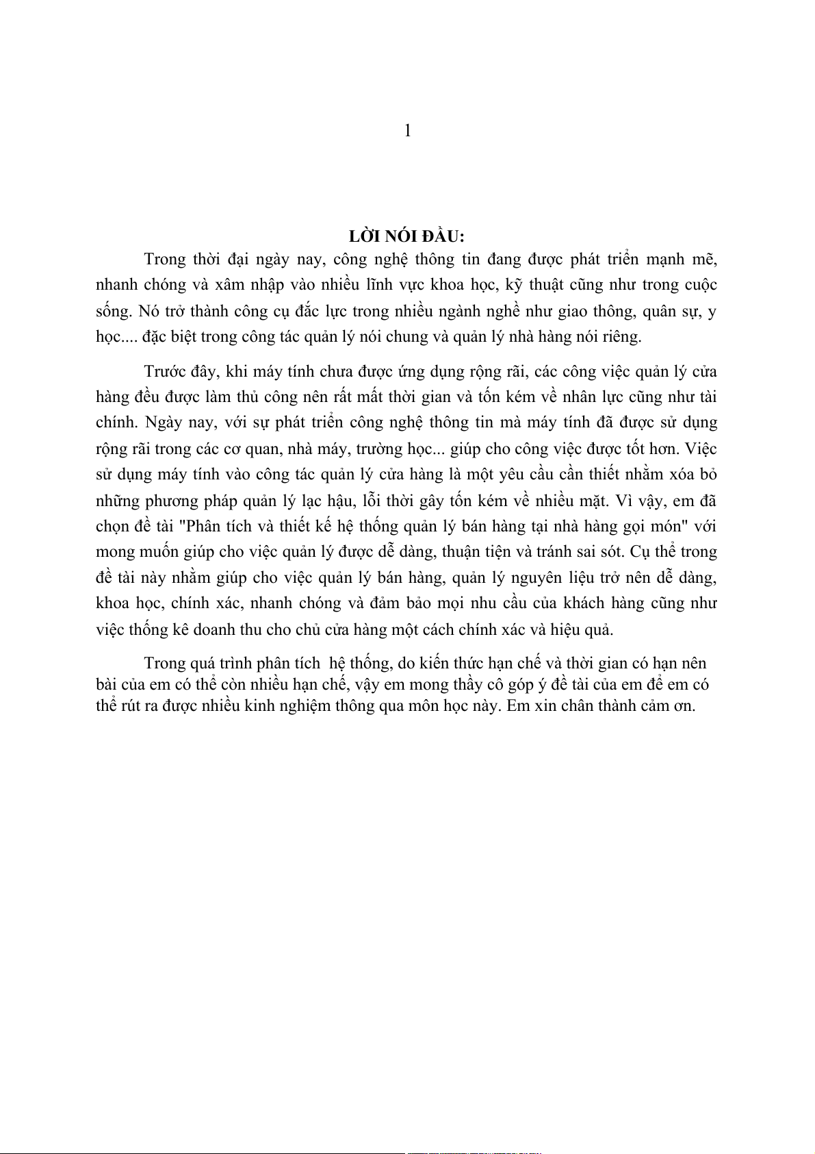 chọn đề tài "Phân tích và thiết kế hệ thống quản lý bán hàng tại nhà hàng gọi món" với