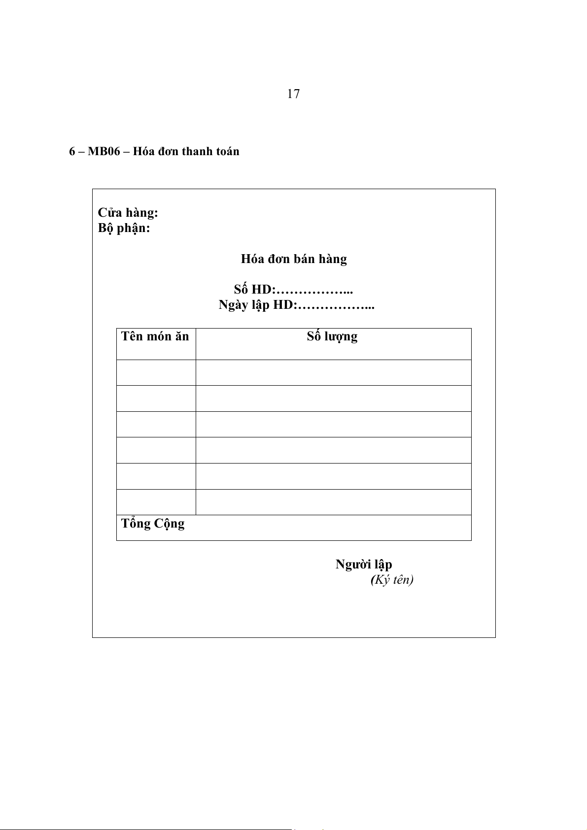 6 – MB06 – Hóa đơn thanh toán Cửa hàng: Bộ phận: Hóa đơn bán hàng