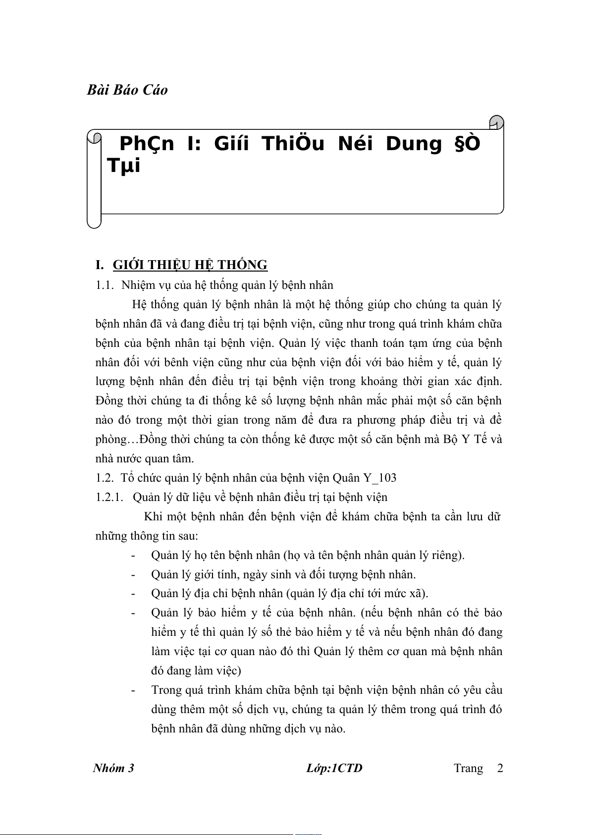 1.Nhiệm vụ của hệ thống quản lý bệnh nhân.................................... 2