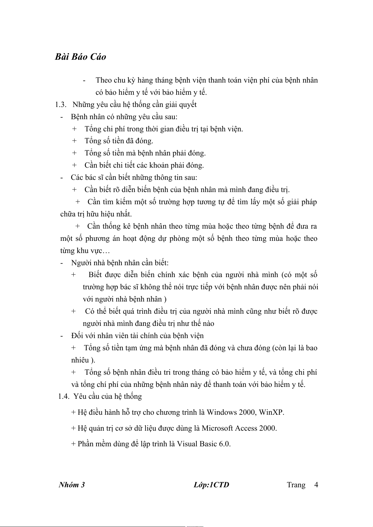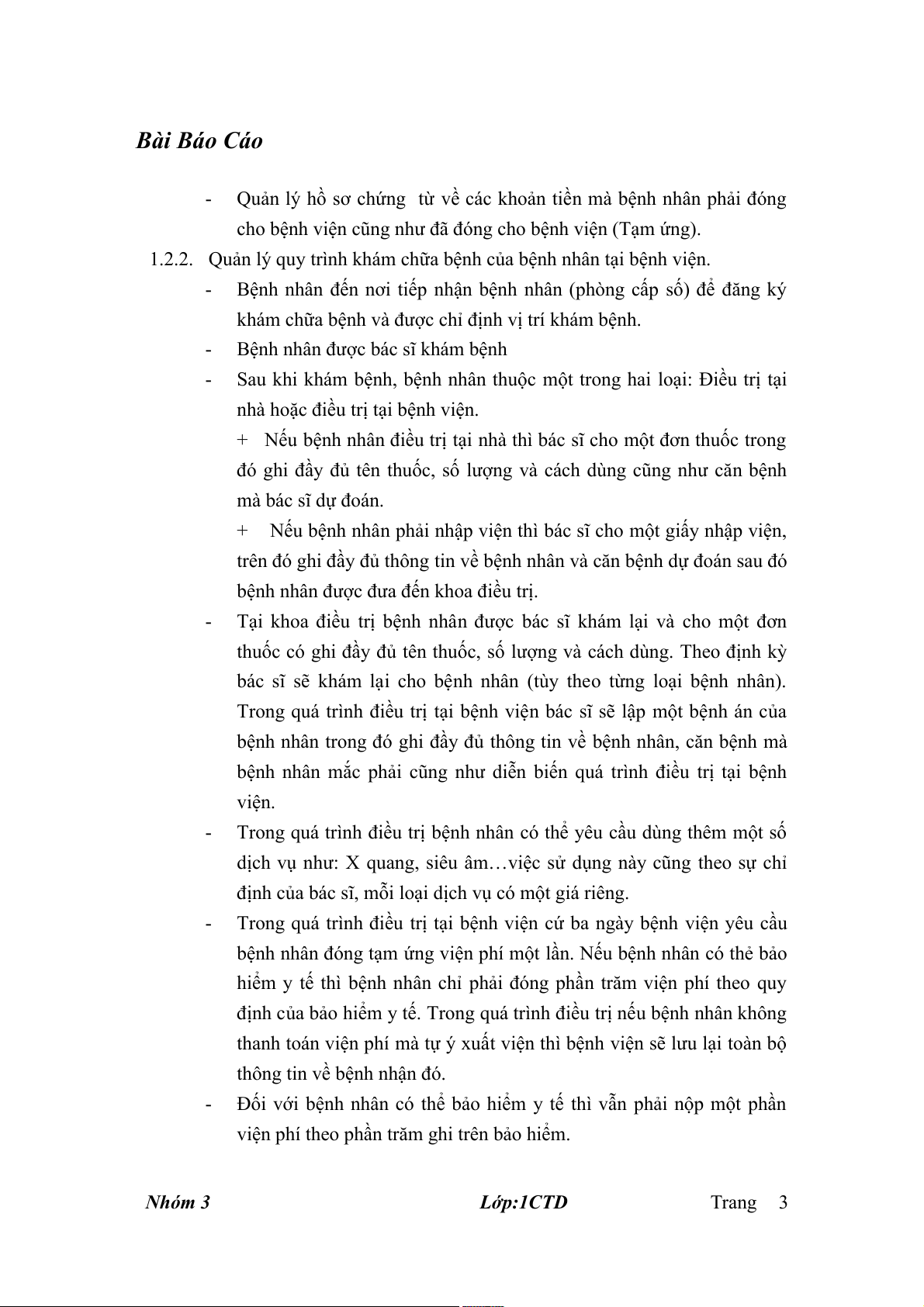 căn cứ vào tình hình quản lý bệnh nhân thực tế của bệnh viện mà nhóm chúng em