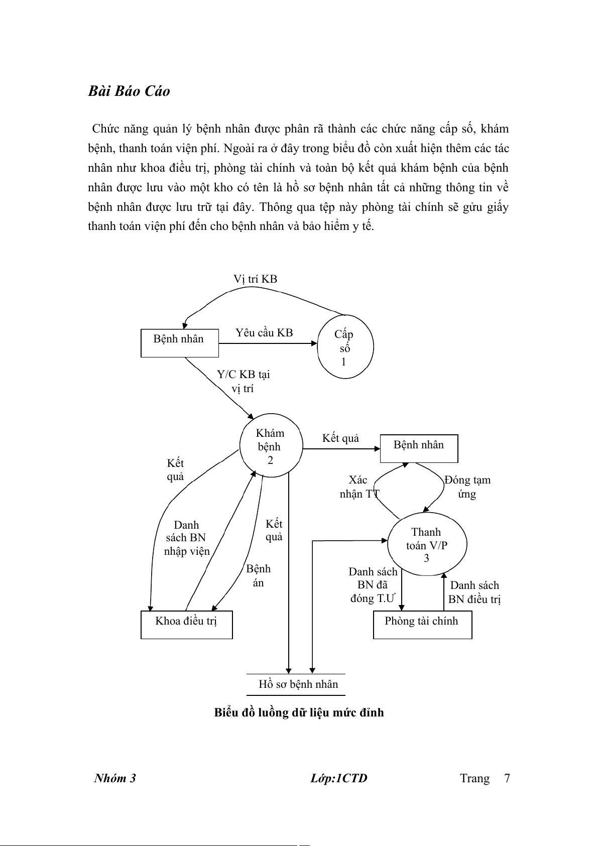 Biểu đồ luồng dữ liệu mức dưới đỉnh :Biểu diễn chức năng khám bệnh