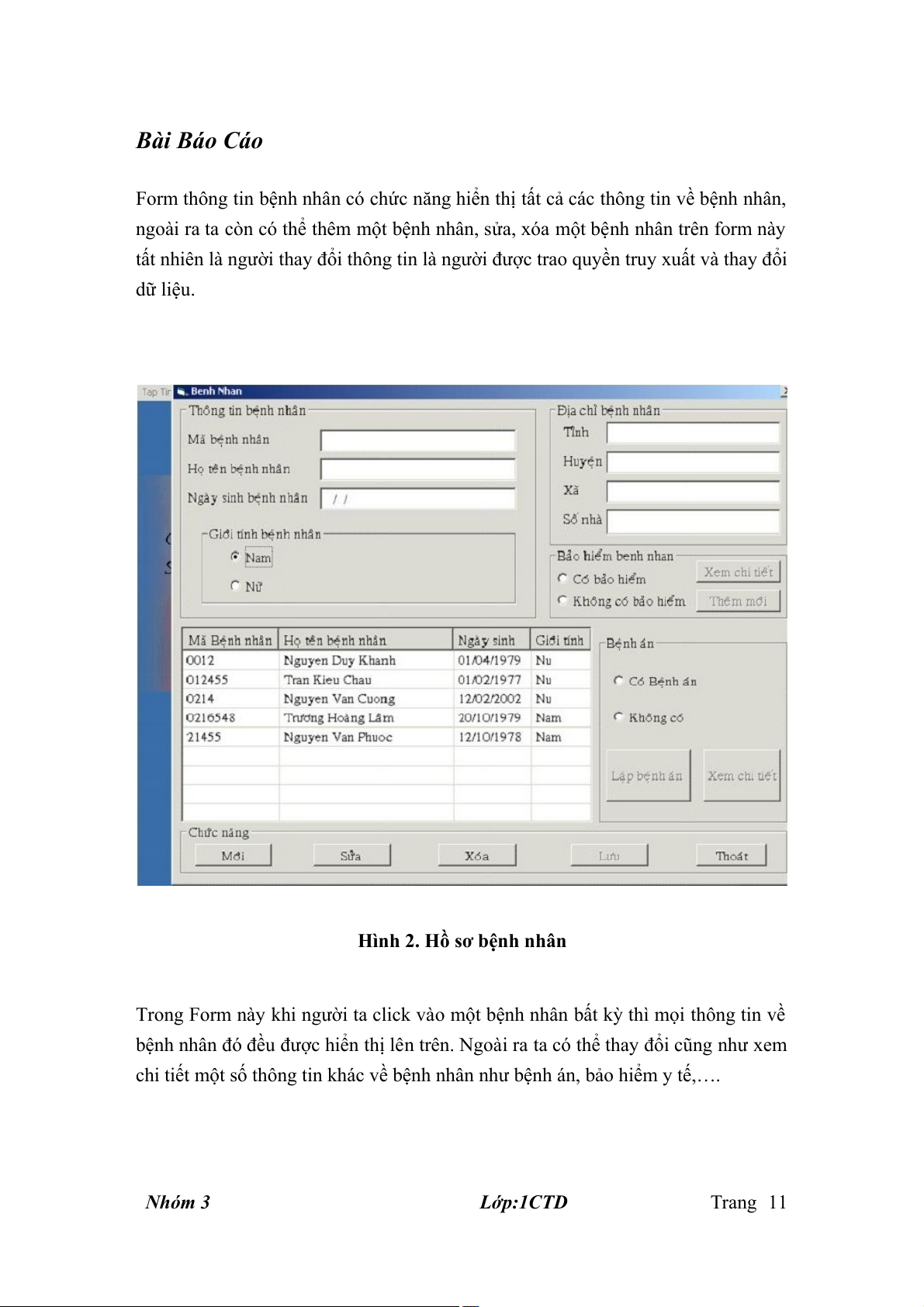 ngoài ra ta còn có thể thêm một bệnh nhân, sửa, xóa một bệnh nhân trên form này
