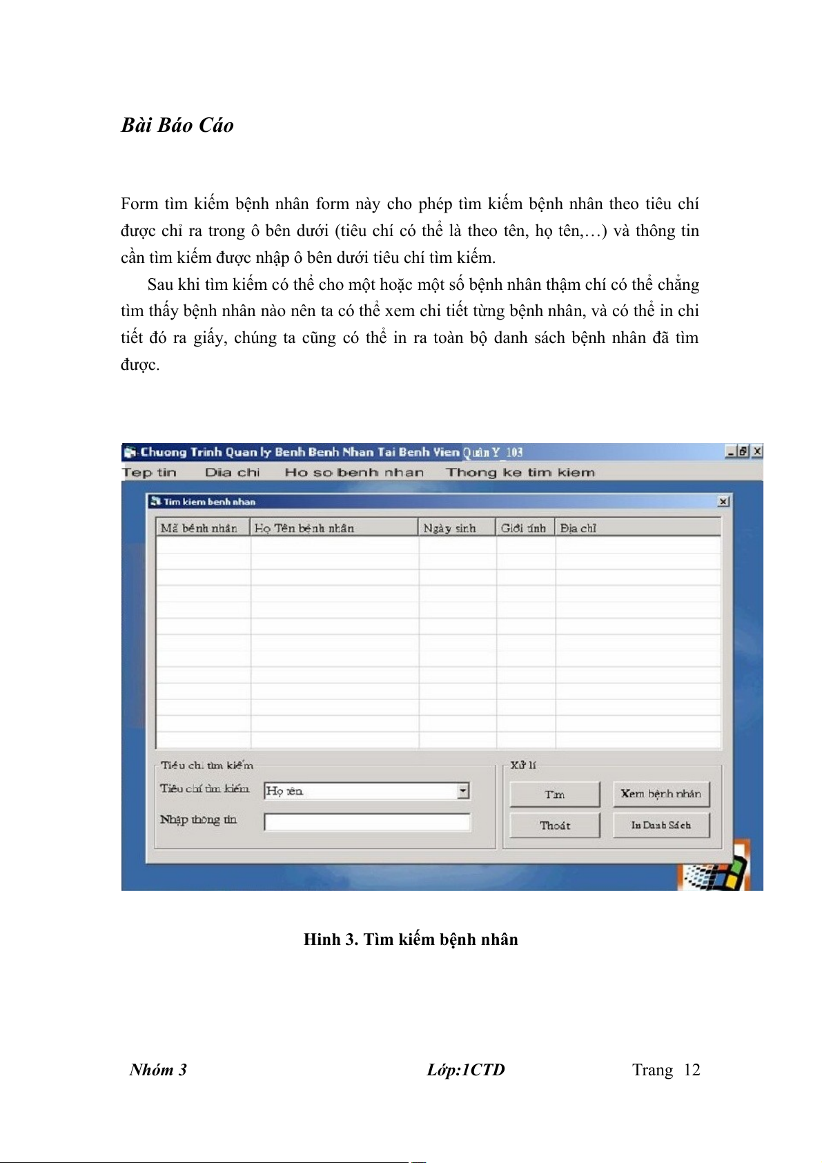Form tìm kiếm bệnh nhân form này cho phép tìm kiếm bệnh nhân theo tiêu chí