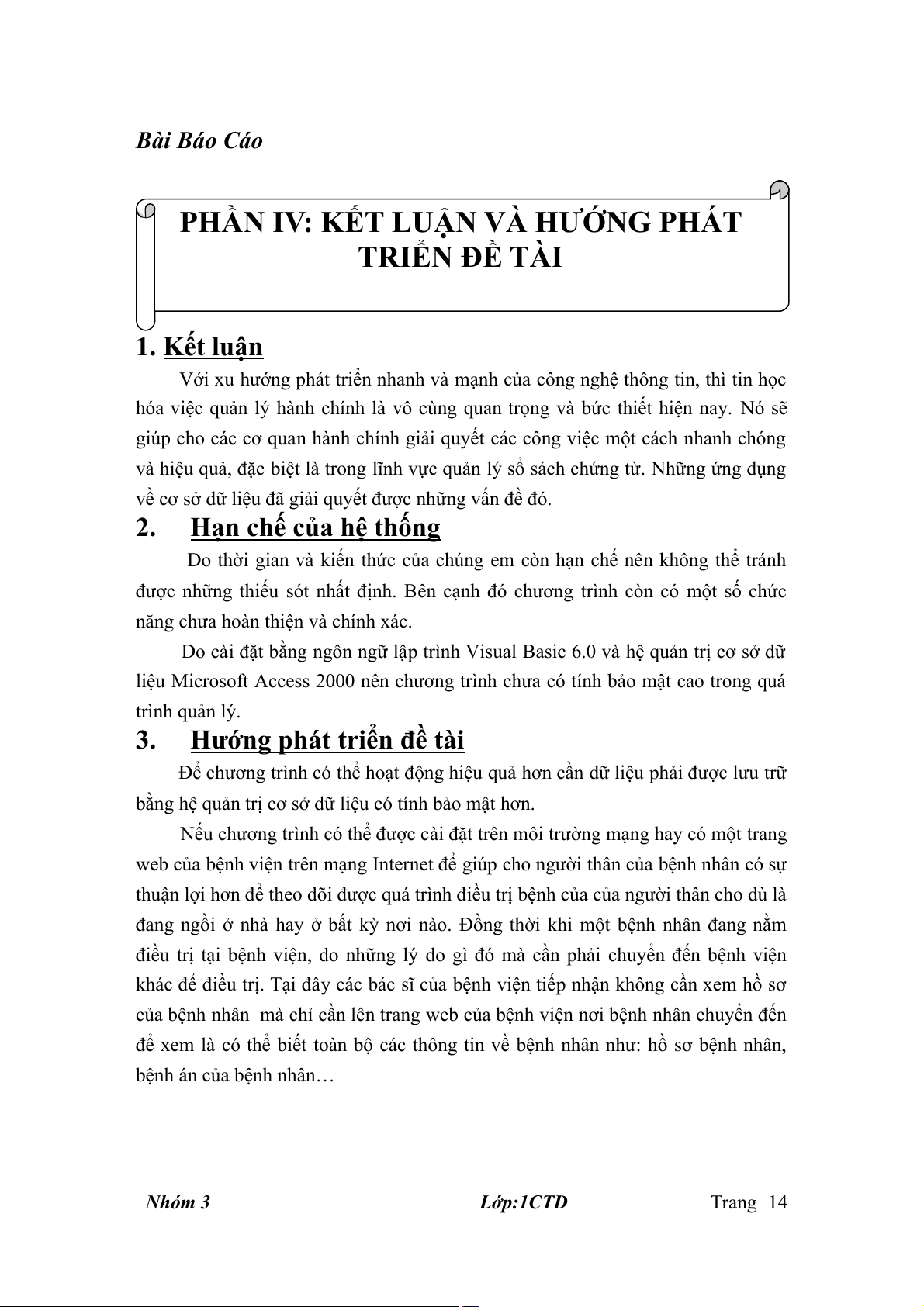 liệu Microsoft Access 2000 nên chương trình chưa có tính bảo mật cao trong quá trình quản lý. 3.