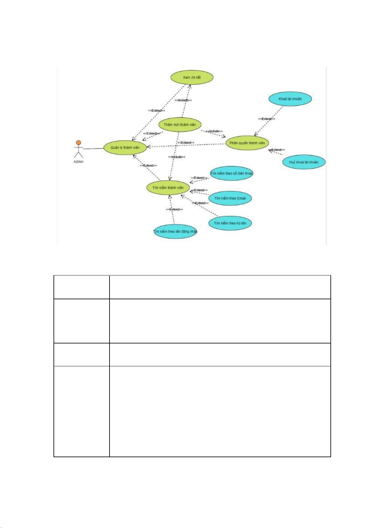 Bảng 2.8. Đặc tả UC chức năng quản lý thành viên Tác nhân Quản trị viên Mô tả