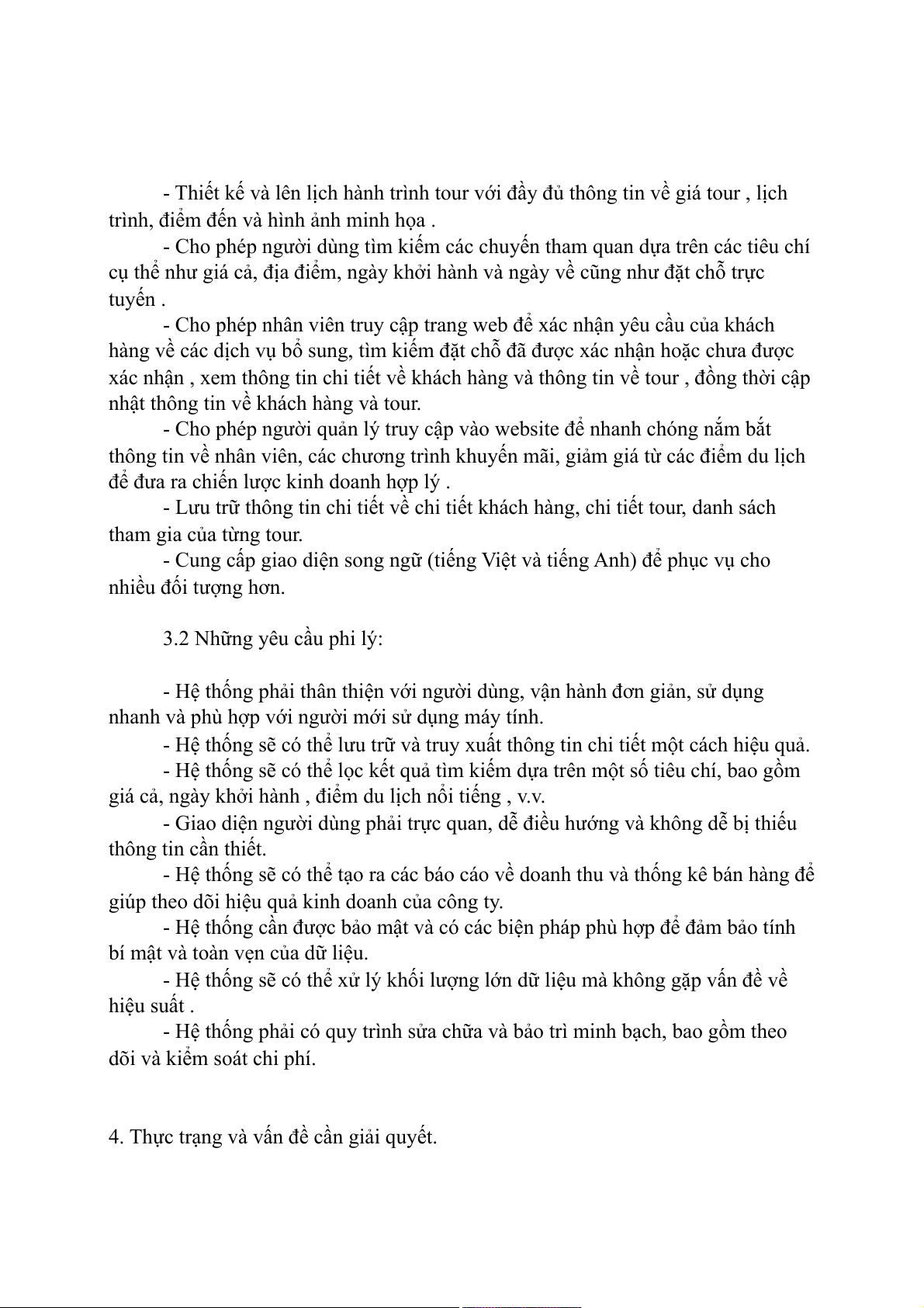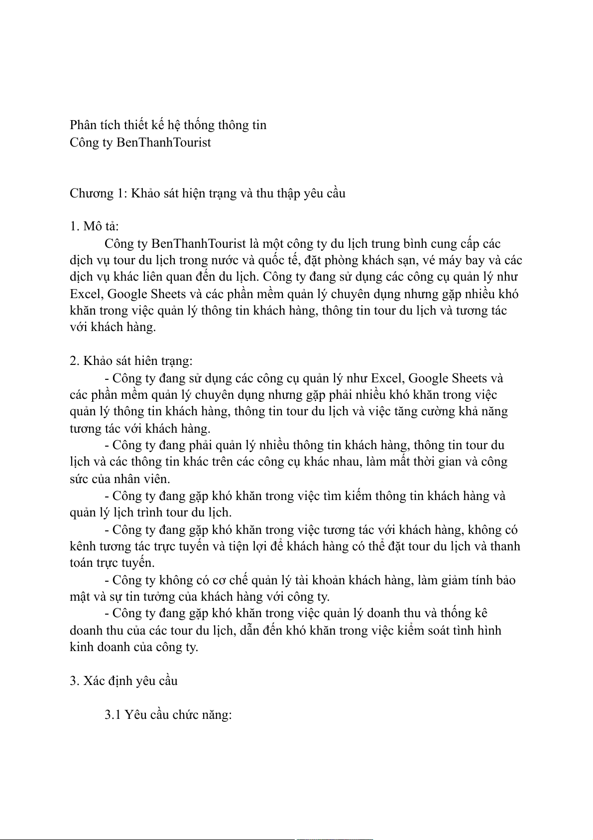 doanh thu của các tour du lịch, dẫn đến khó khăn trong việc kiểm soát tình hình kinh doanh của công ty. 3. Xác định yêu cầu 3.1 Yêu cầu chức năng: