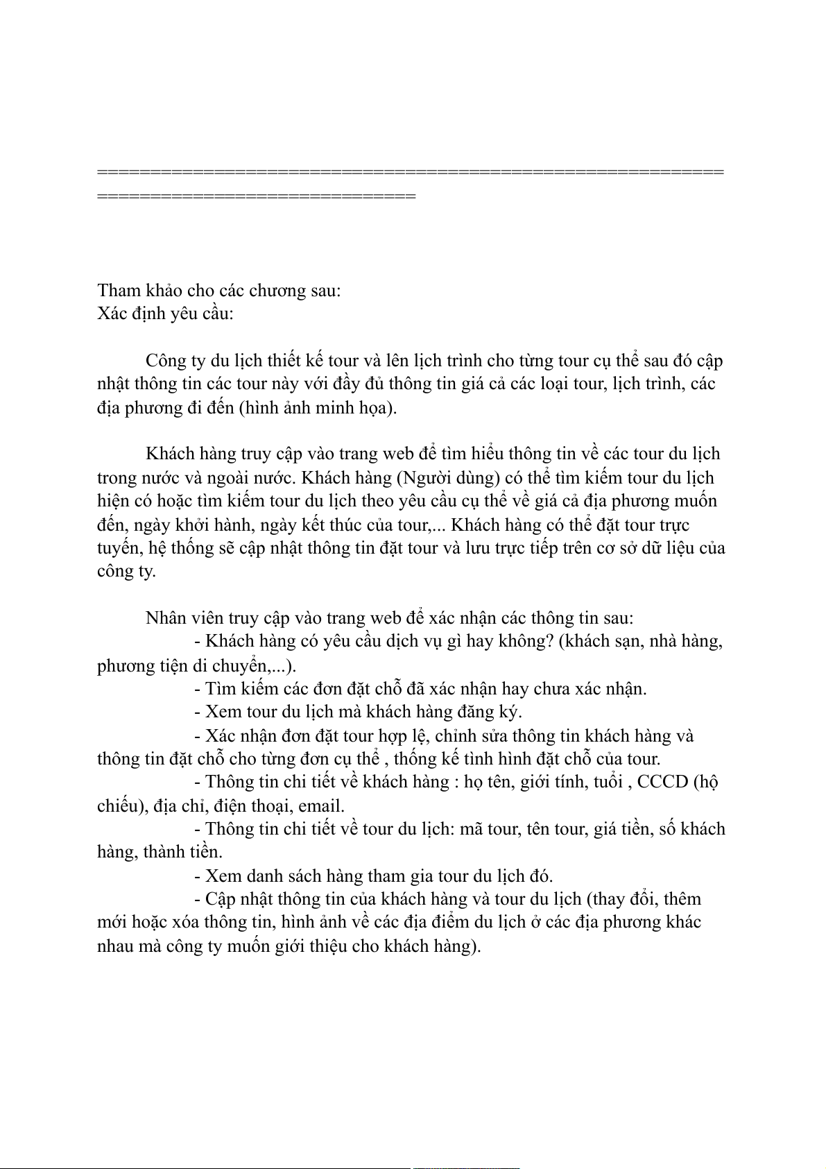 năng quản lý thông tin khách hàng, thông tin tour du lịch, lịch trình tour du lịch và