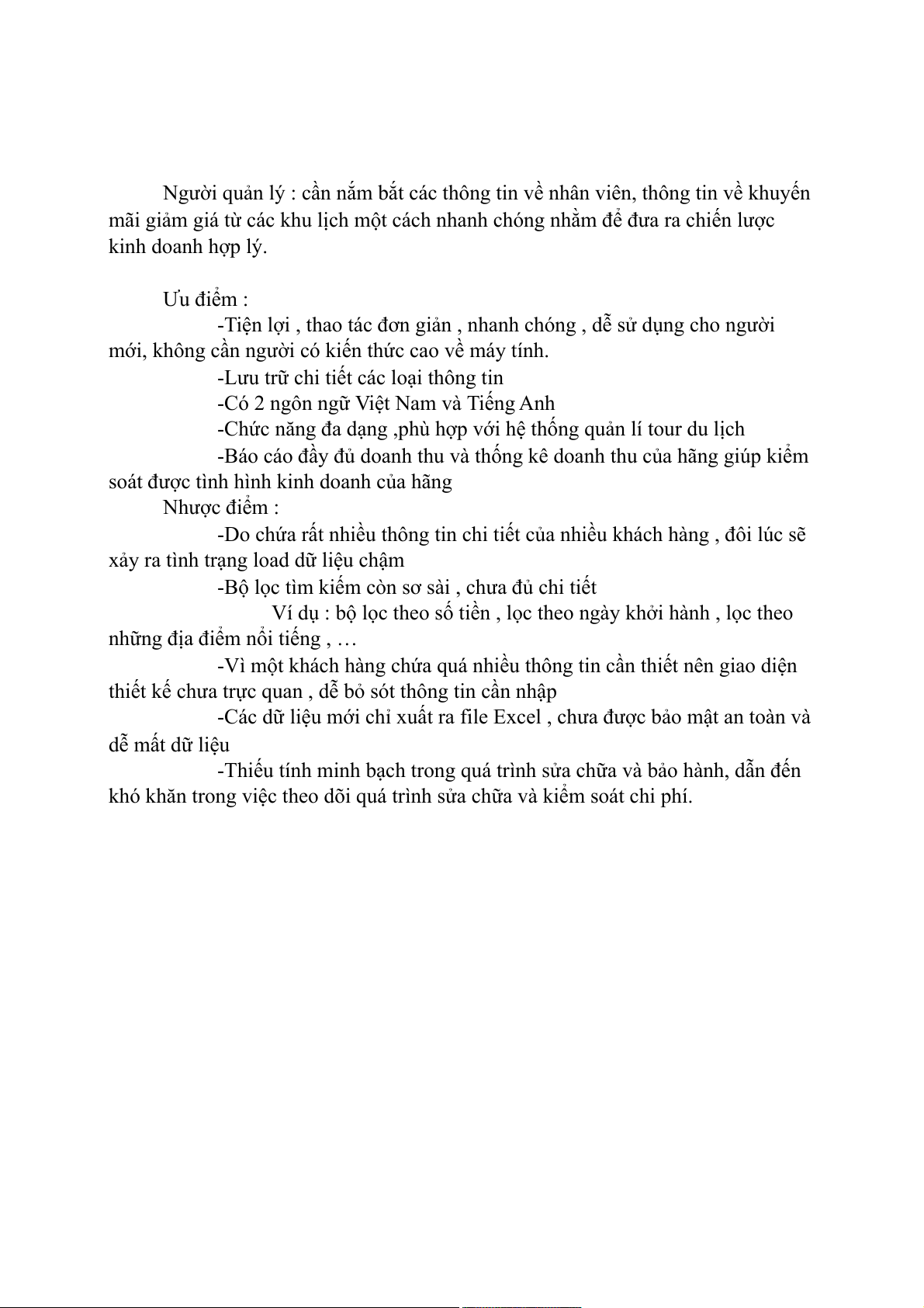 -Chức năng đa dạng ,phù hợp với hệ thống quản lí tour du lịch