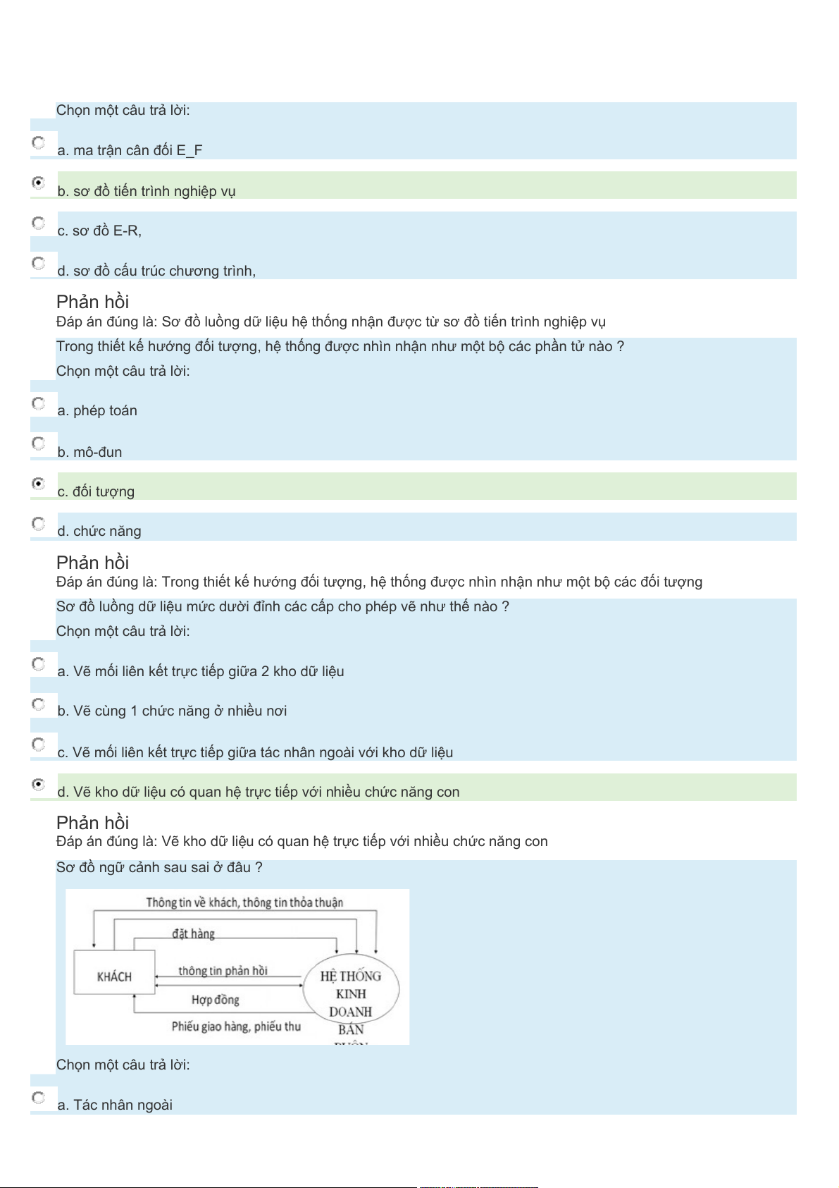 Đáp án đúng là: Sơ đồ luồng dữ liệu hệ thống nhận được từ sơ đồ tiến trình nghiệp vụ