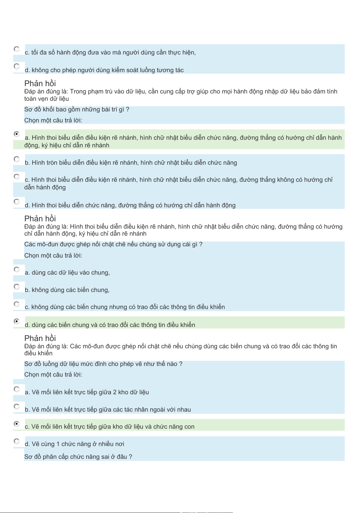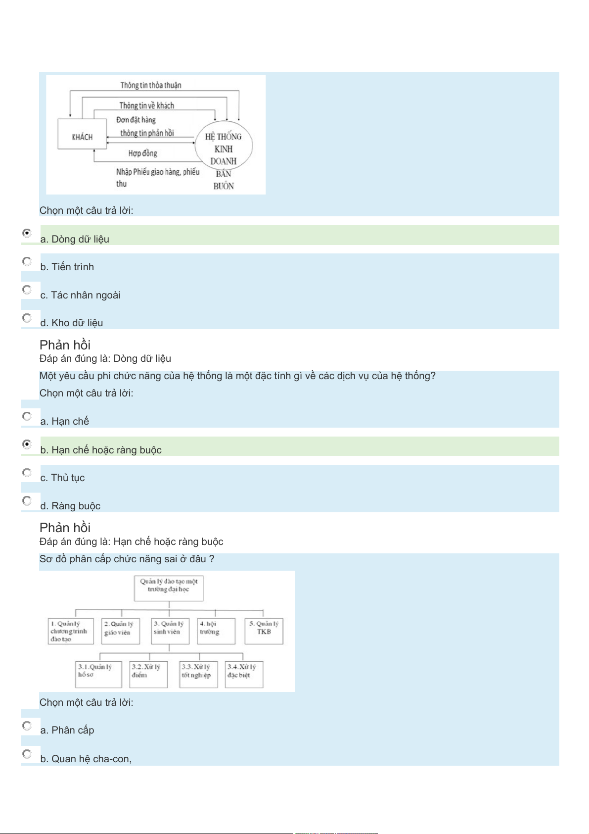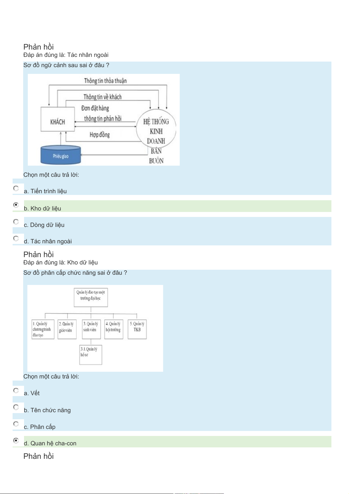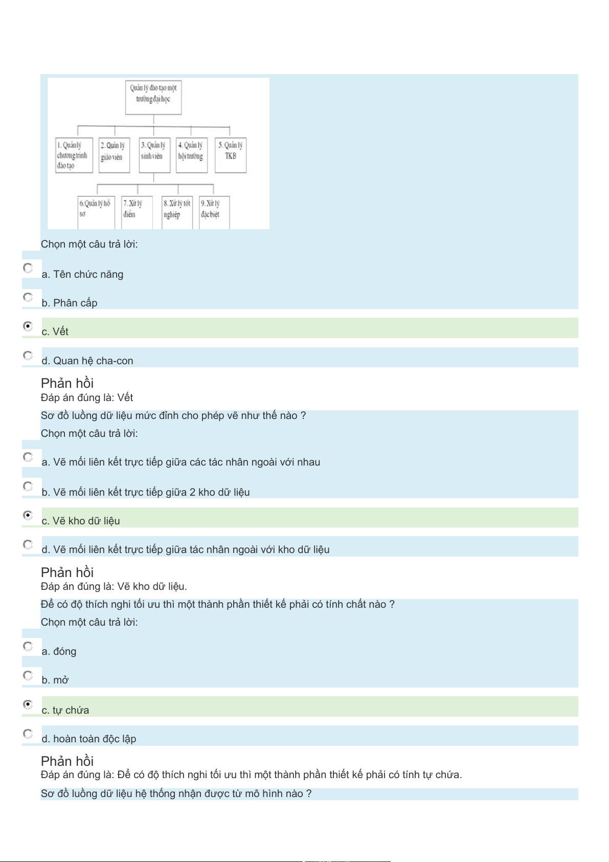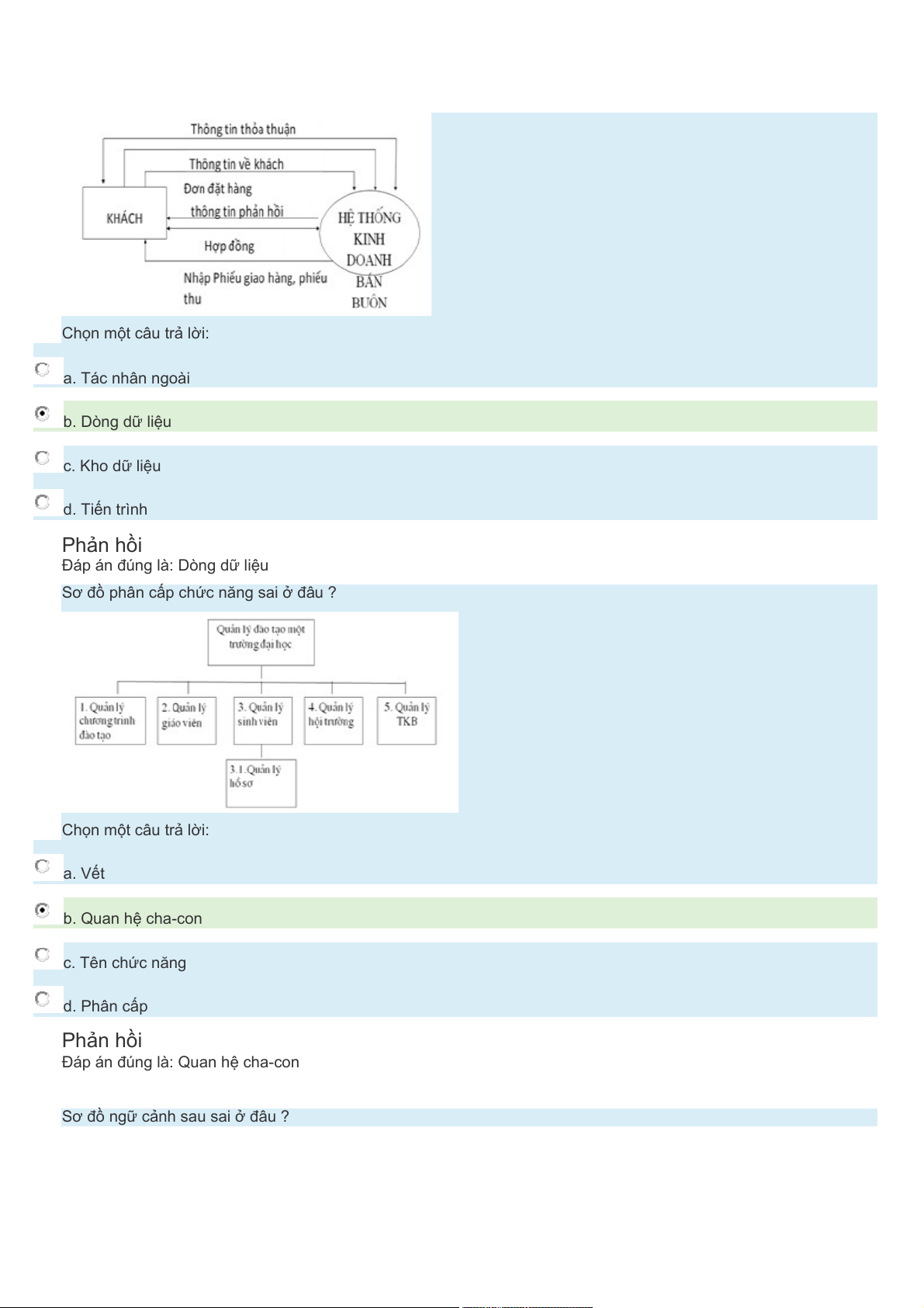 Sơ đồ phân cấp chức năng sai ở đâu ? Chọn một câu trả lời: a. Phân cấp b. Quan hệ cha-con, c. Tên chức năng d. Vết Phản hồi