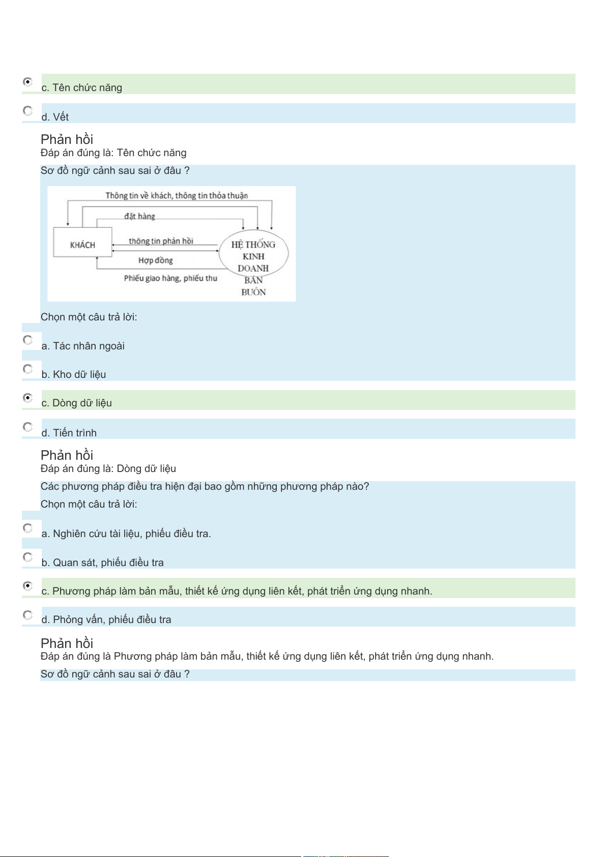 Sơ đồ ngữ cảnh sau sai ở đâu ? Chọn một câu trả lời: a. Tác nhân ngoài b. Kho dữ liệu c. Dòng dữ liệu d. Tiến trình Phản hồi