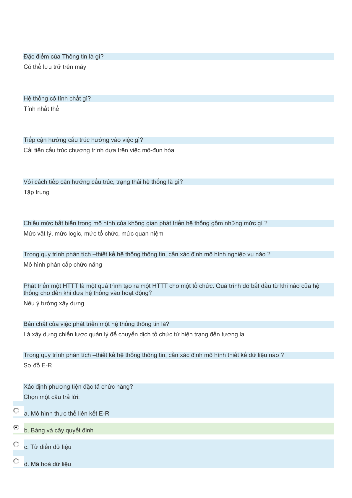 một thiết bị, một tiến trình hay một hệ thống đủ chi tiết để cho phép thực hiện nó về mặt nào ? Chọn một câu trả lời: a. khái niệm b. logic c. vật lý d. nghiệp vụ Phản hồi