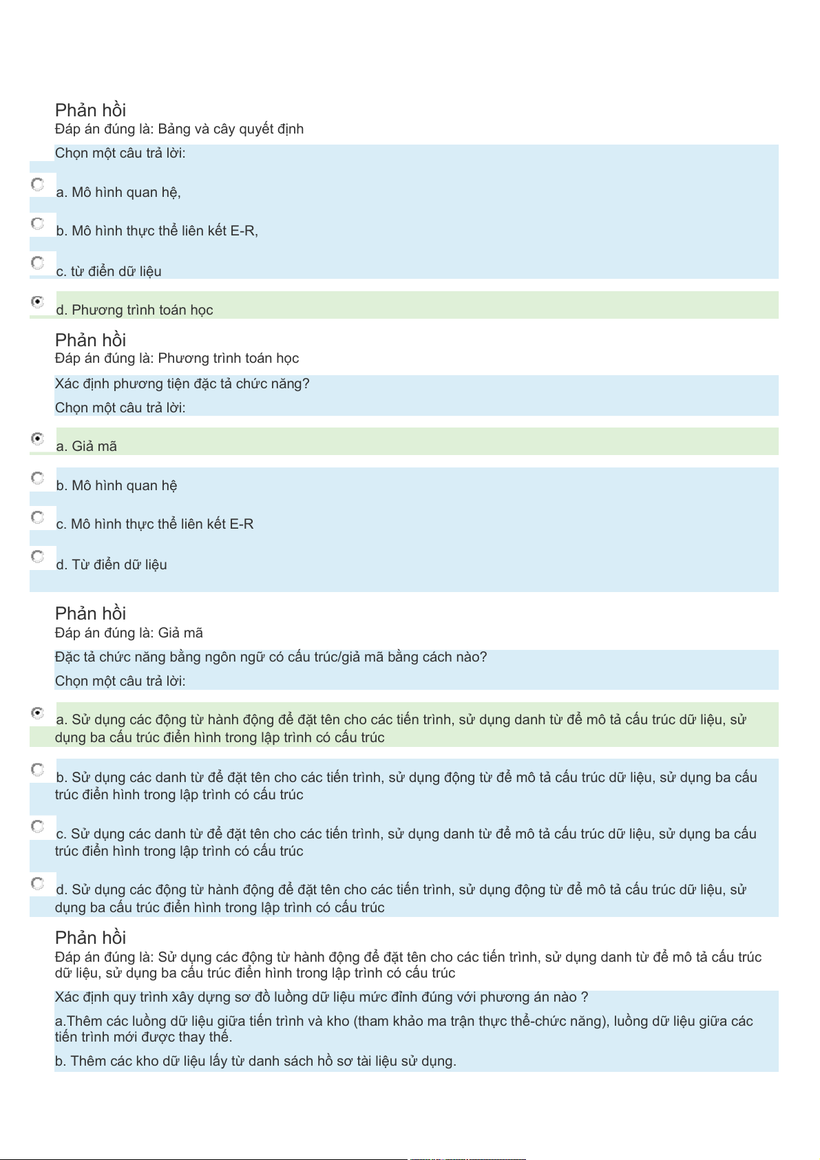 Xác định phương tiện đặc tả chức năng? Chọn một câu trả lời: a. Giả mã b. Mô hình quan hệ