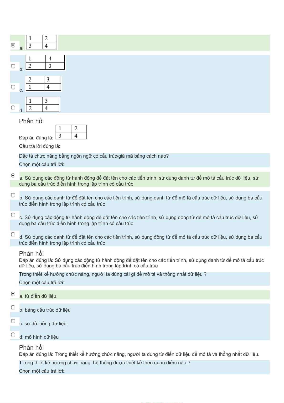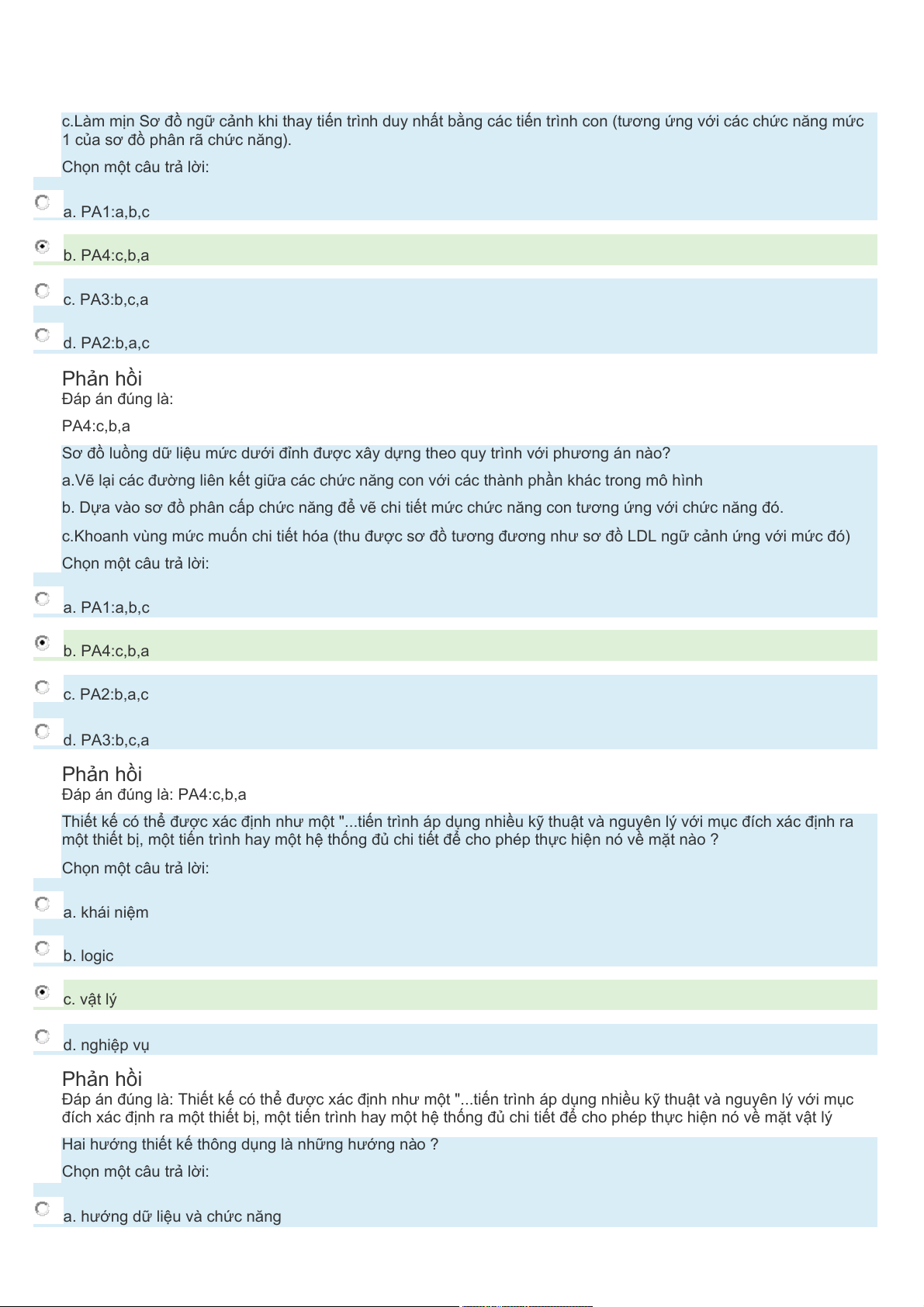 1 của sơ đồ phân rã chức năng). Chọn một câu trả lời: a. PA1:a,b,c b. PA4:c,b,a c. PA3:b,c,a d. PA2:b,a,c Phản hồi Đáp án đúng là: PA4:c,b,a