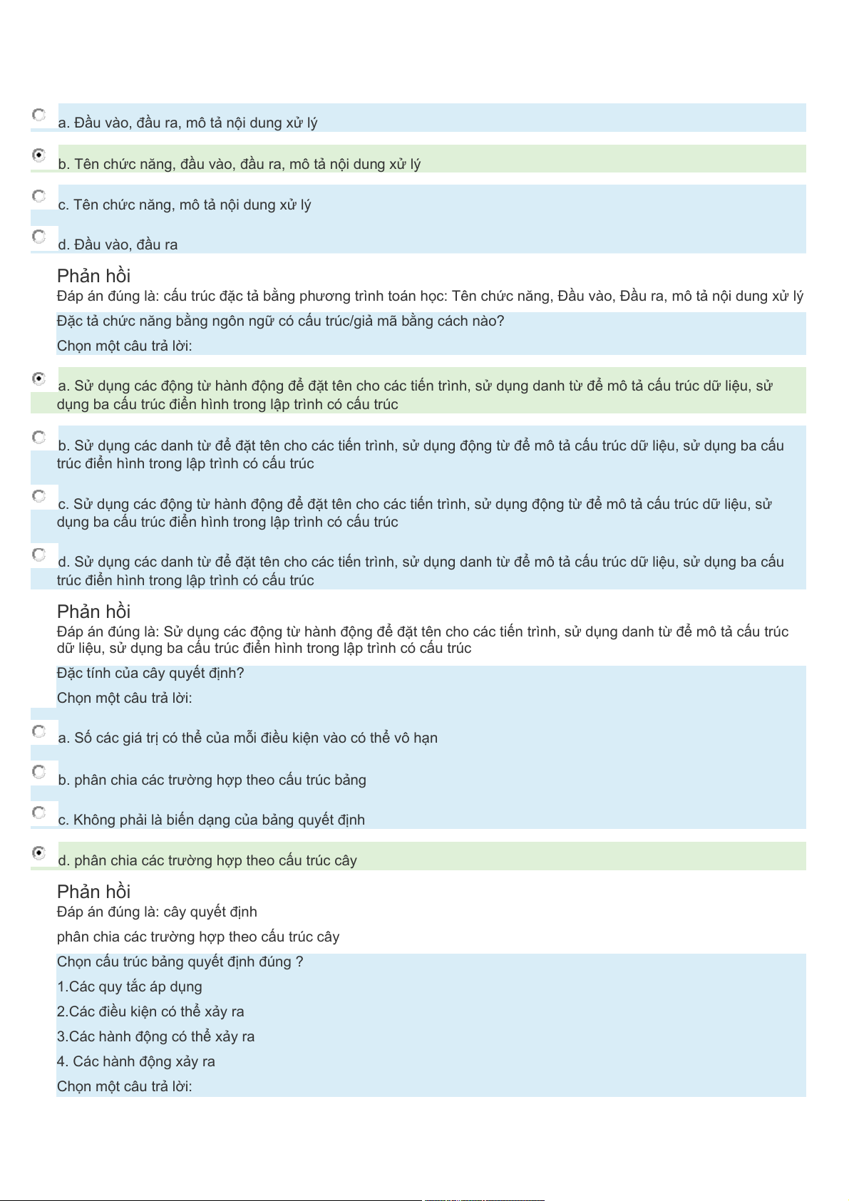 c. việc sử dụng dữ liệu d. cấu trúc dữ liệu Phản hồi