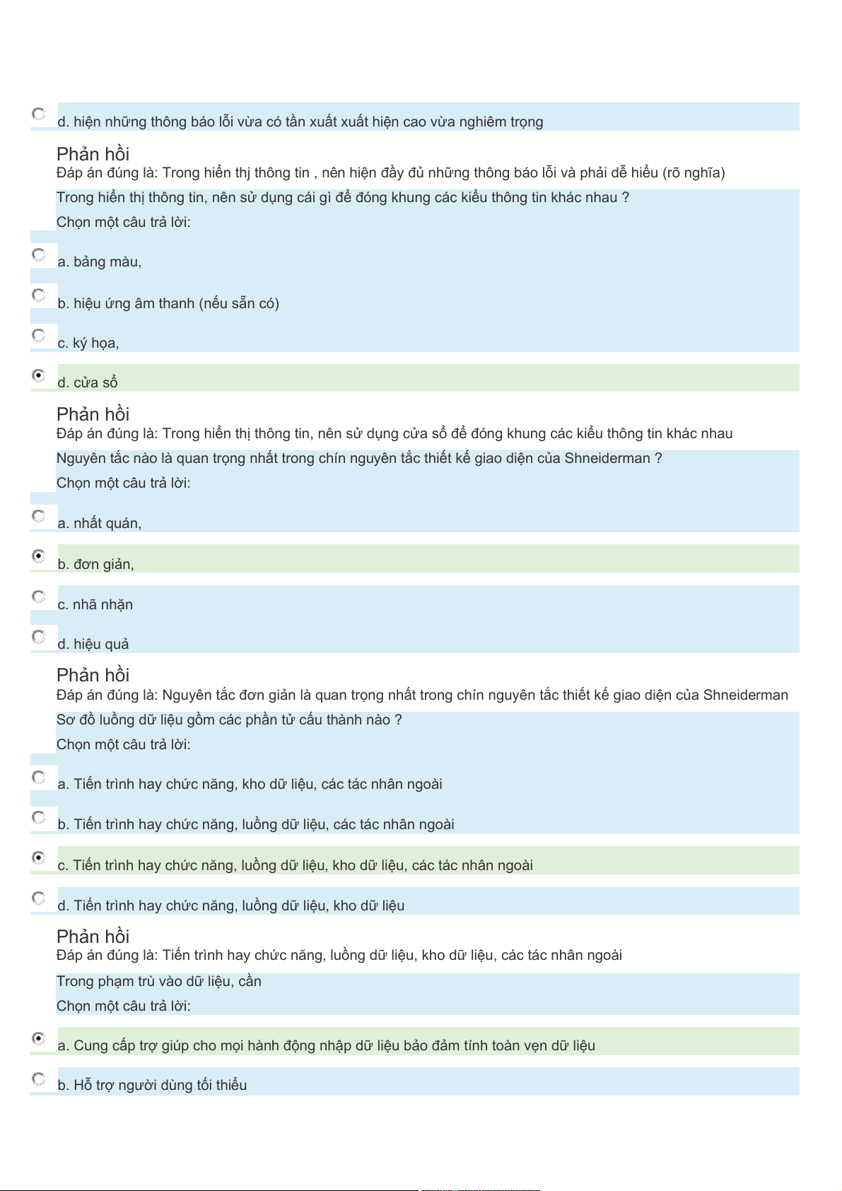 d. không cho phép người dùng kiểm soát luồng tương tác Phản hồi
