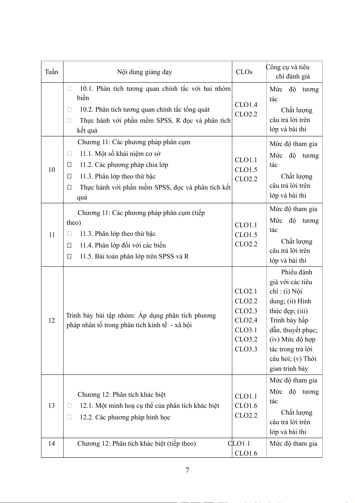 Chương 10: Phân tích tương quan chính tắc CLO1.1 Mức độ tham gia 6 Công cụ và tiêu Tuần Nội dung giảng dạy CLOs chí đánh giá