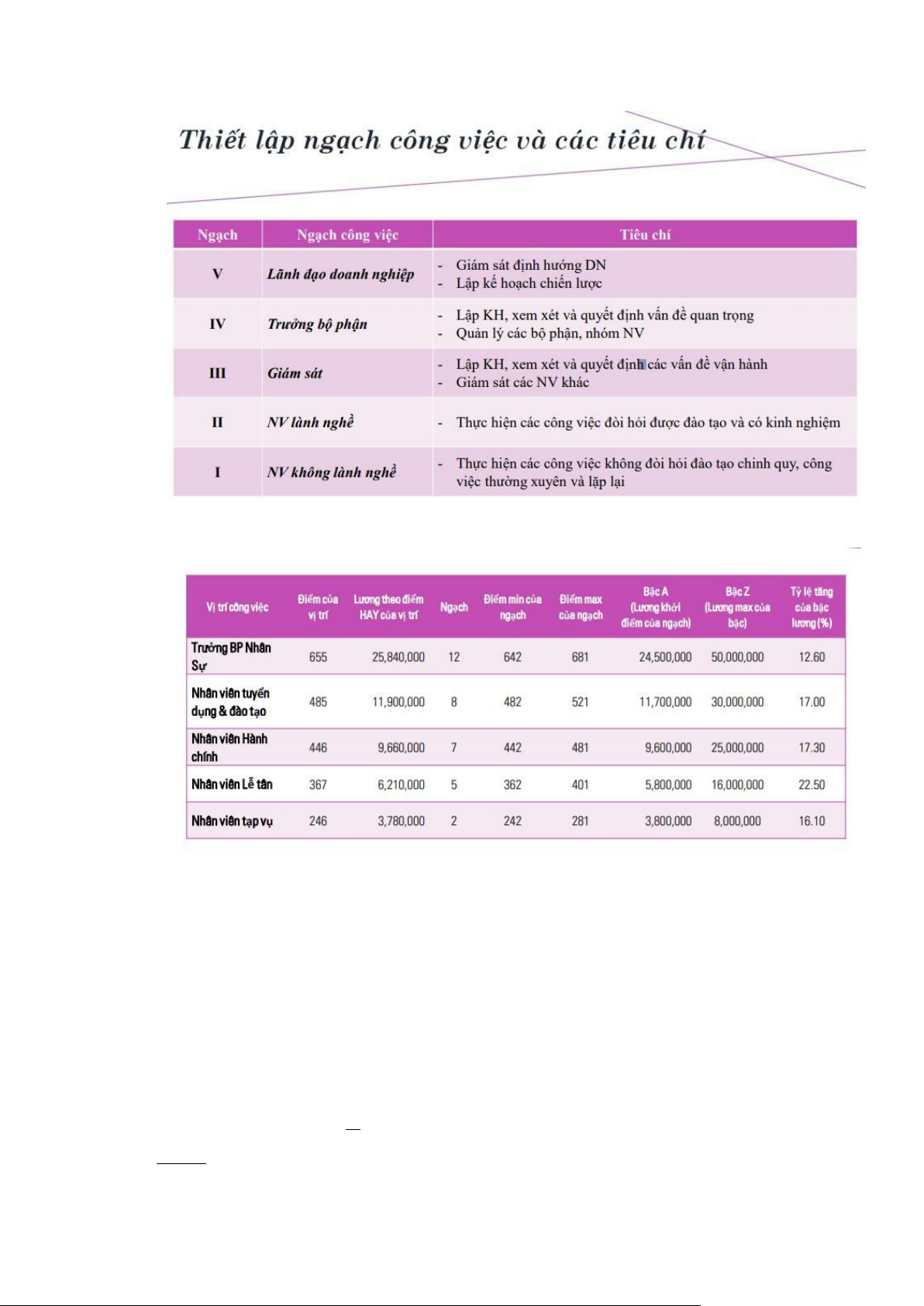tạp trong công việc để xác định thang bảng lương của nhân viên.