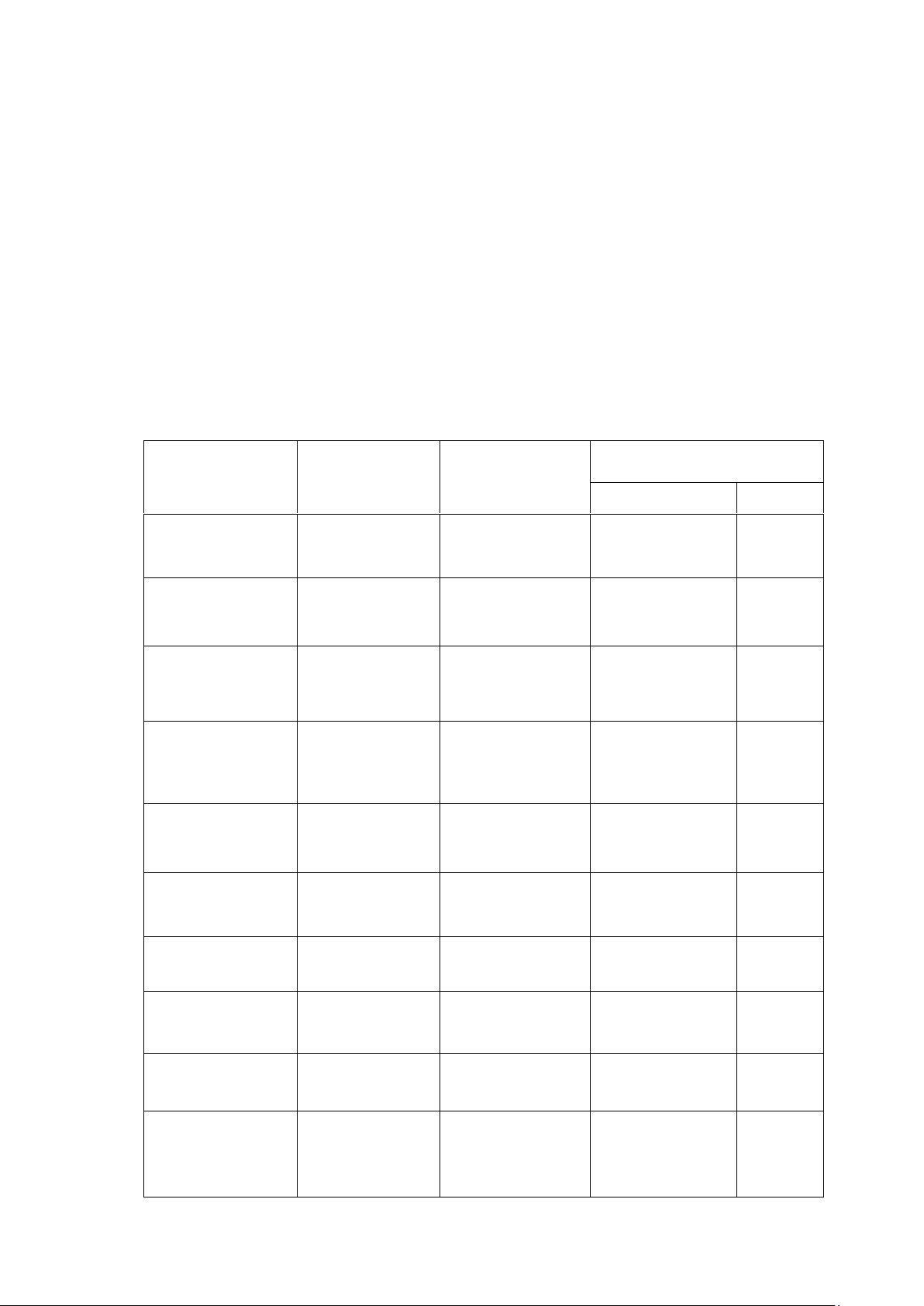 Bảng 2.2. Thống kê lượng khách trong nước theo nhóm tuổi, nghề nghiệp So sánh 2022/2021 TT Tiêu chí Năm 2021 Năm 2022 +/- % Theo nhóm tuổi Từ 18 - 35 8750 3060 -5690 -65.02 1 Từ 35 - 55 3525 1250 -2275 -64.53 Trên 55 tuổi 615 50 -565 -91.86 Theo nghề nghiệp Sinh viên 250 60 -190 -76 Doanh nhân 5495 2465 -3030 -55.14 2 Kĩ sư, giáo sư 5460 1597 -3863 -70.75 Công nhân viên 1525 155 -1370 -89.83 chức Hưu trí 160 83 -77 -48.12 Thu nhập 3 Dưới 20 triệu 6960 1410 -5550 -79.74 Từ 20 – 100 triệu 5680 2455 -3225 -56.77 lOMoAR cPSD| 60826700 Trên 100 triệu 250 495 245 98