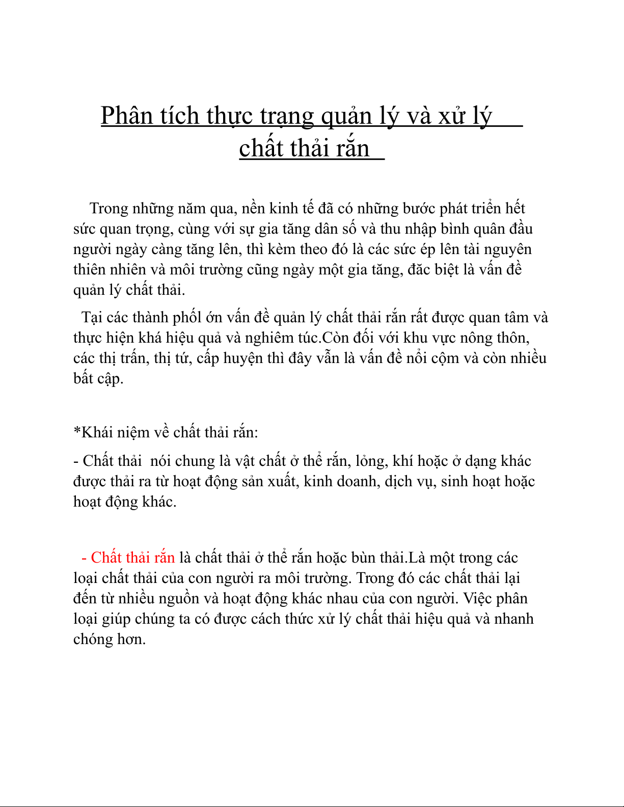 Phân tích thực trạng quản lý và xử lý chất thải rắn