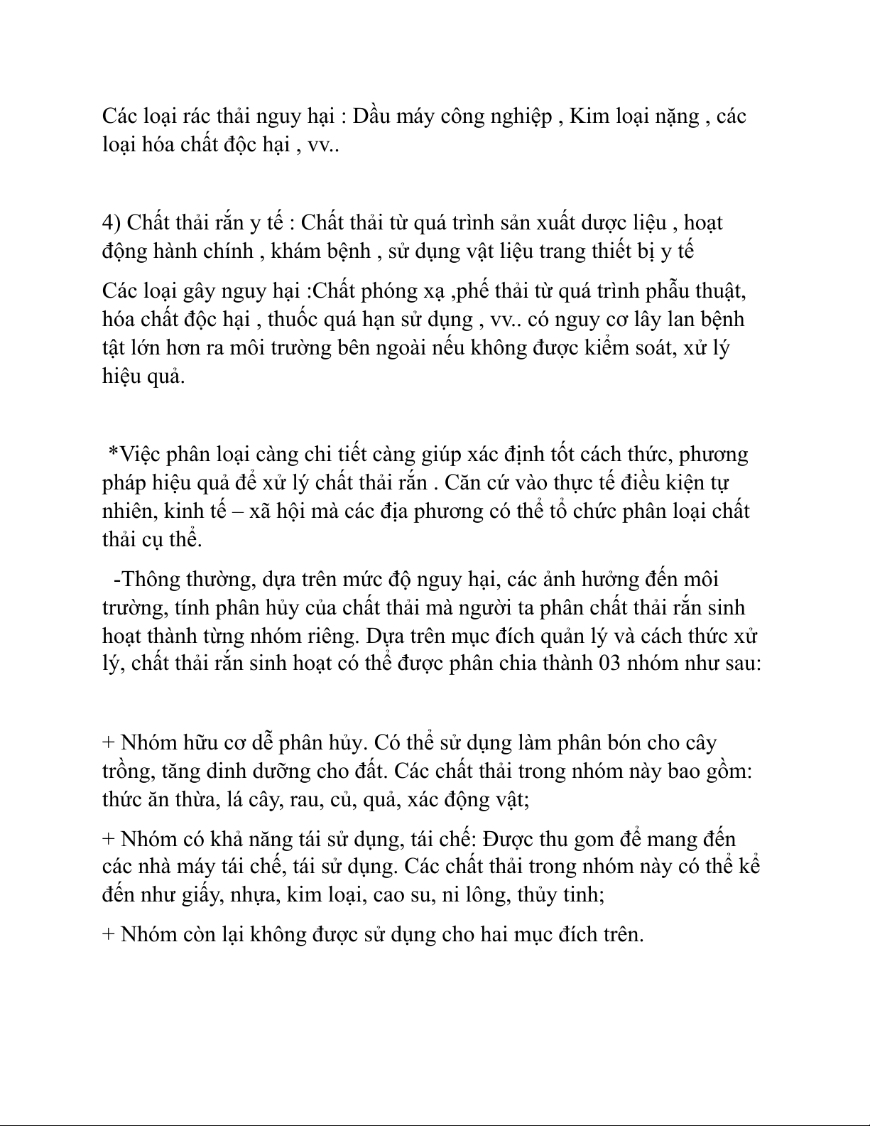 lý, chất thải rắn sinh hoạt có thể được phân chia thành 03 nhóm như sau: +