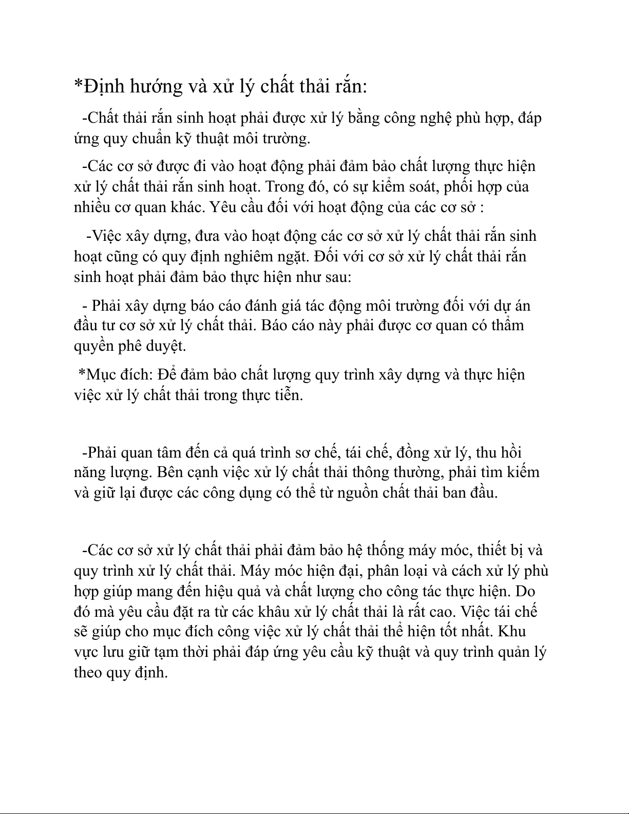 -Chất thải rắn sinh hoạt phải được xử lý bằng công nghệ phù hợp, đáp
