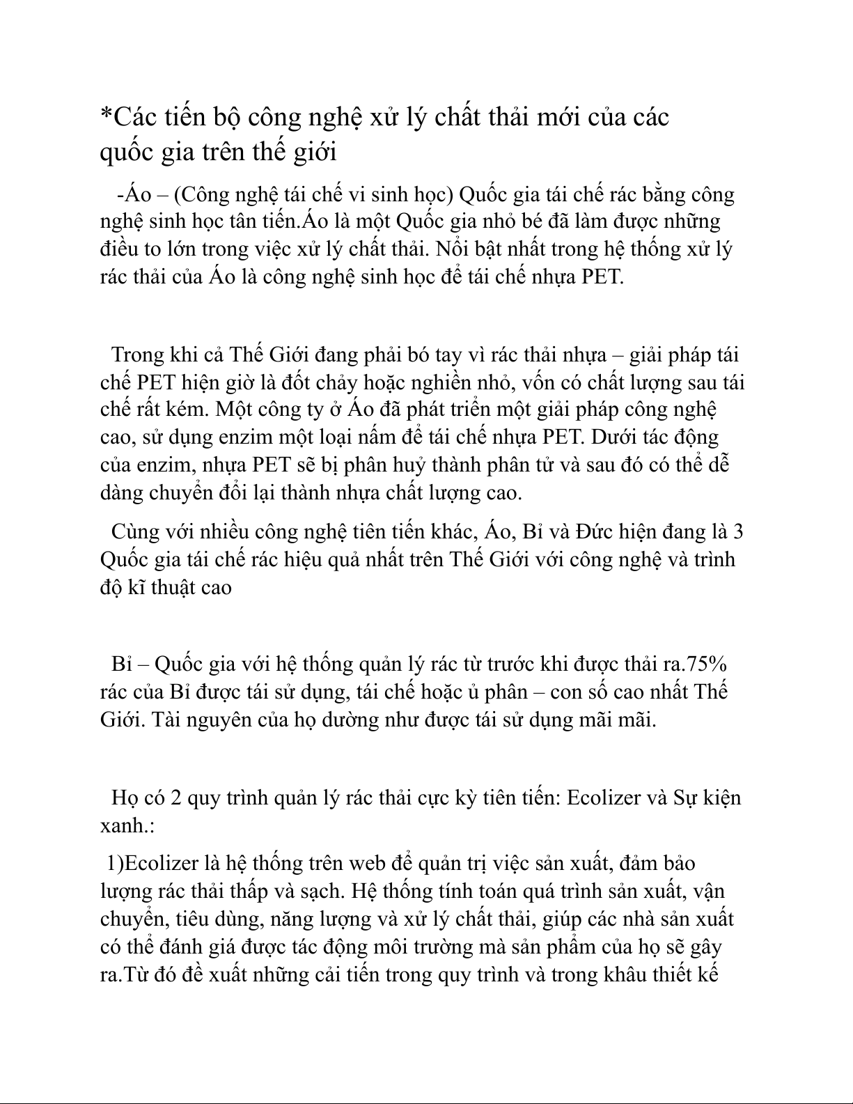 -Áo – (Công nghệ tái chế vi sinh học) Quốc gia tái chế rác bằng công