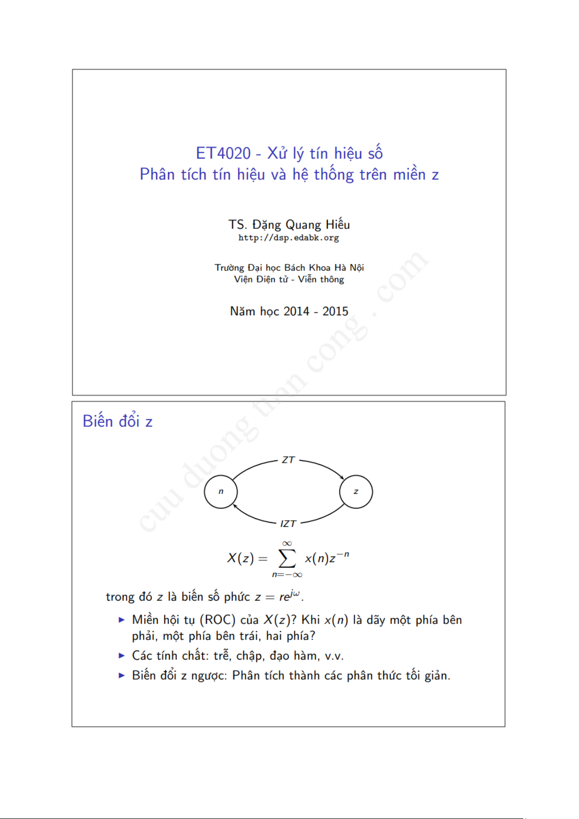 Phân tích tín hiệu & hệ thống trong miền Z môn Xử lý tín hiệu số | Trường Đại học Bách Khoa Hà Nội