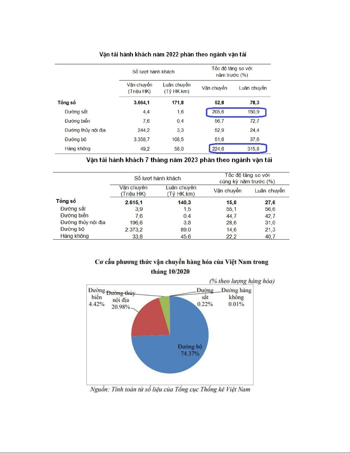 Thời gian di chuyển (Hà Nội - TP. HCM) Đường sắt hiện tại 30 - 36 tiếng Đường bộ 30 - 40 tiếng Đường hàng không