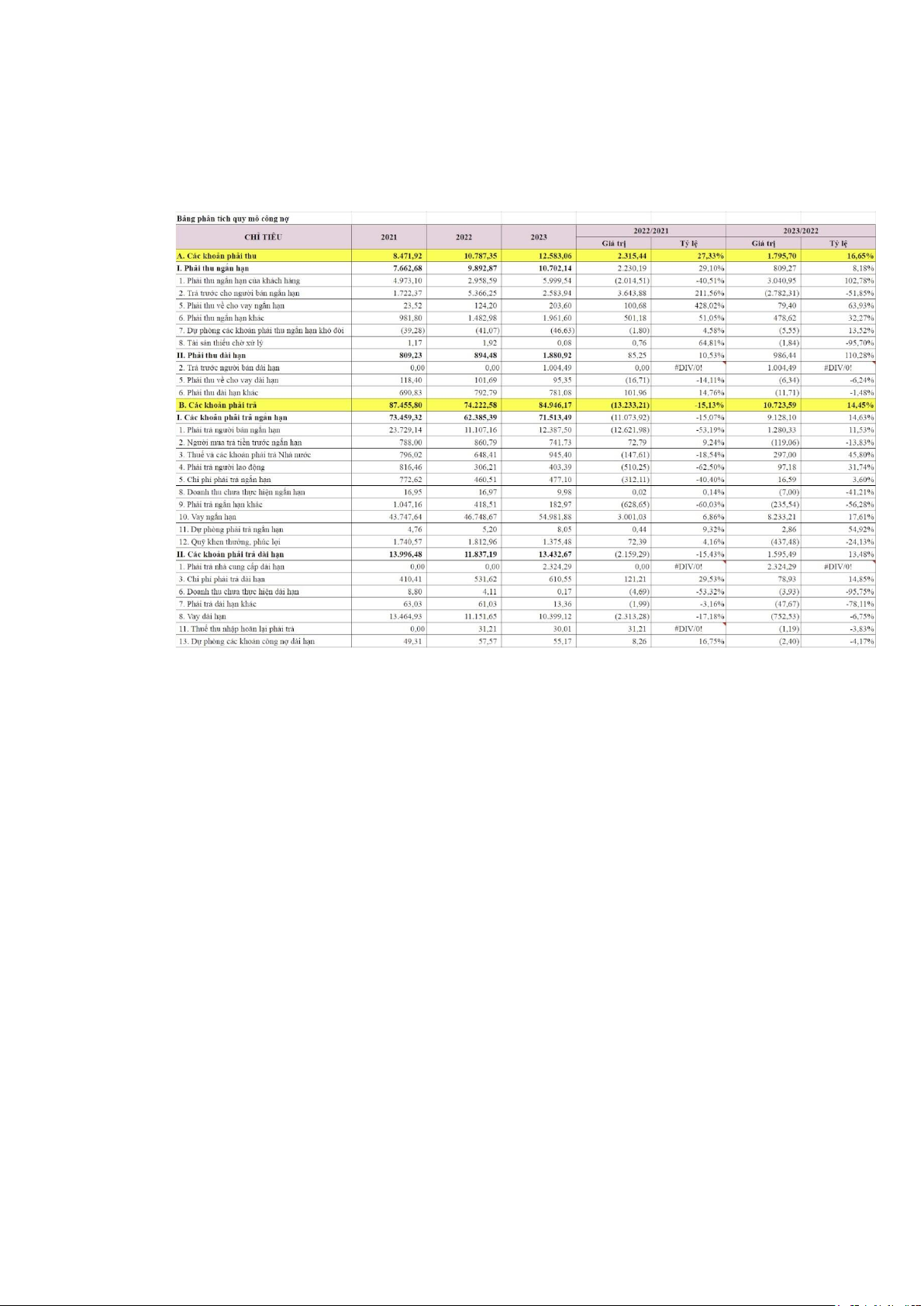 Trong đó phải trả người bán ngắn hạn chiếm tỷ trọng lớn nhất. Năm 2023, phải trả