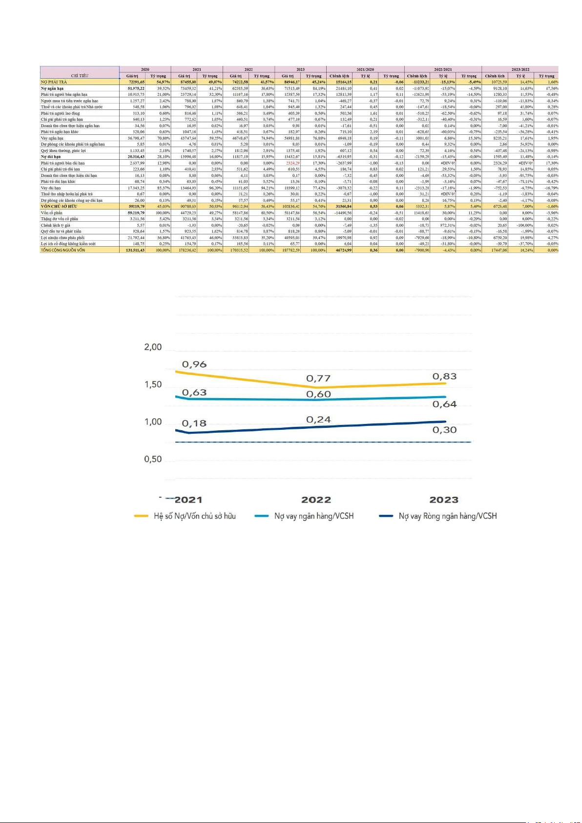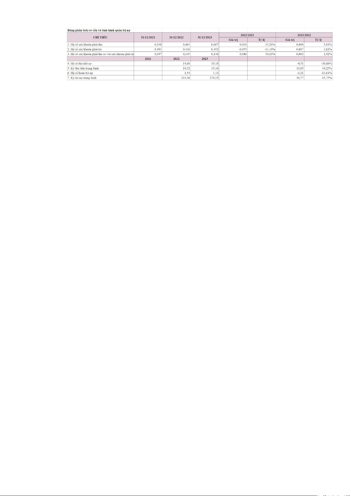 dụng, cuối năm 2022 có 0,063 phần vốn bị chiếm dụng, cuối năm 2023 có 0,067 phần