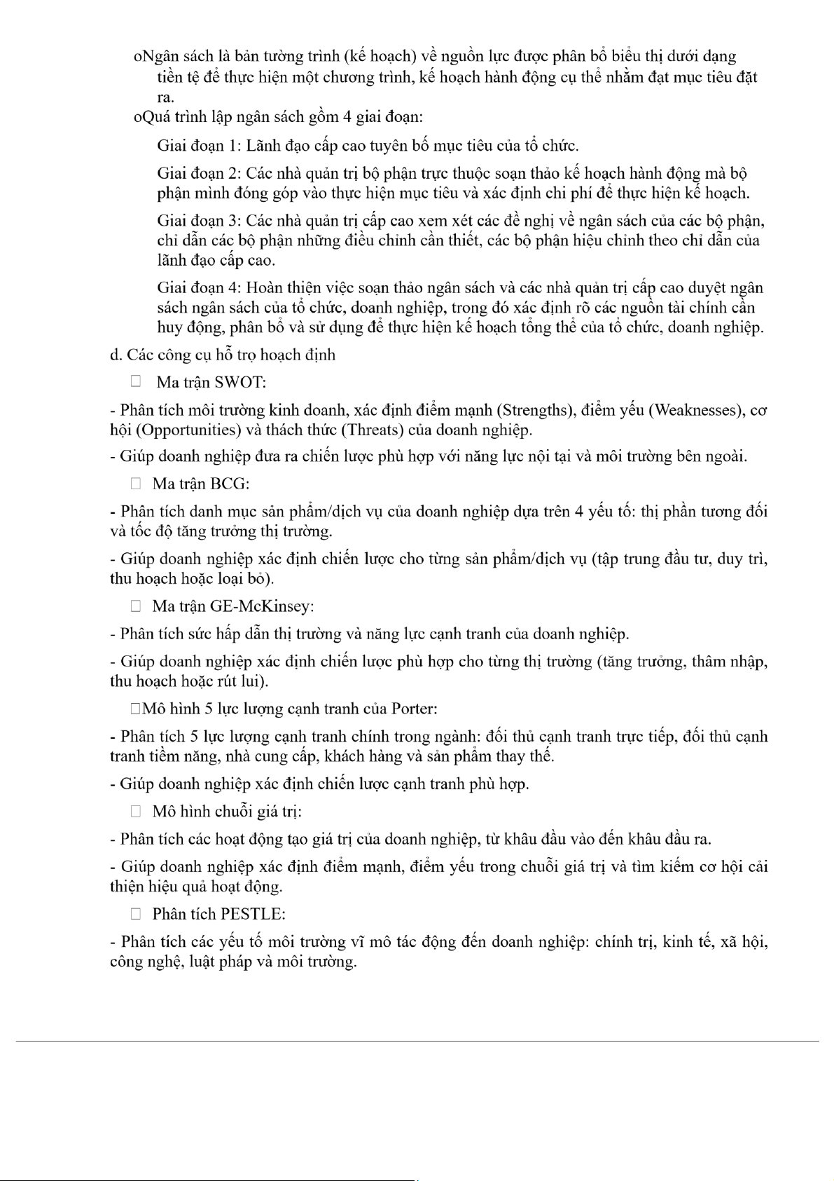 bước phải tiến hành, cá c nguồn lực cần sử dụng và các yếu tố cần thiết khác để nhằm