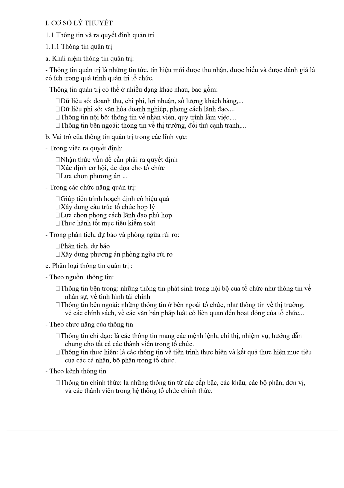 sinh hay để ra quyết định quản trị trong từng tình huống cụ thể. - Thông tin