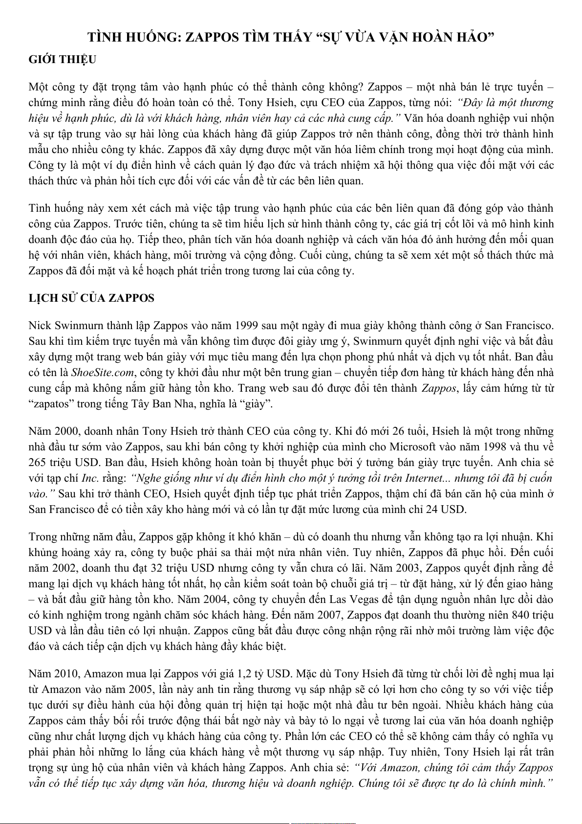 TÌNH HUỐNG: ZAPPOS TÌM THẤY “SỰ VỪA VẶN HOÀN HẢO” GIỚI THIỆU