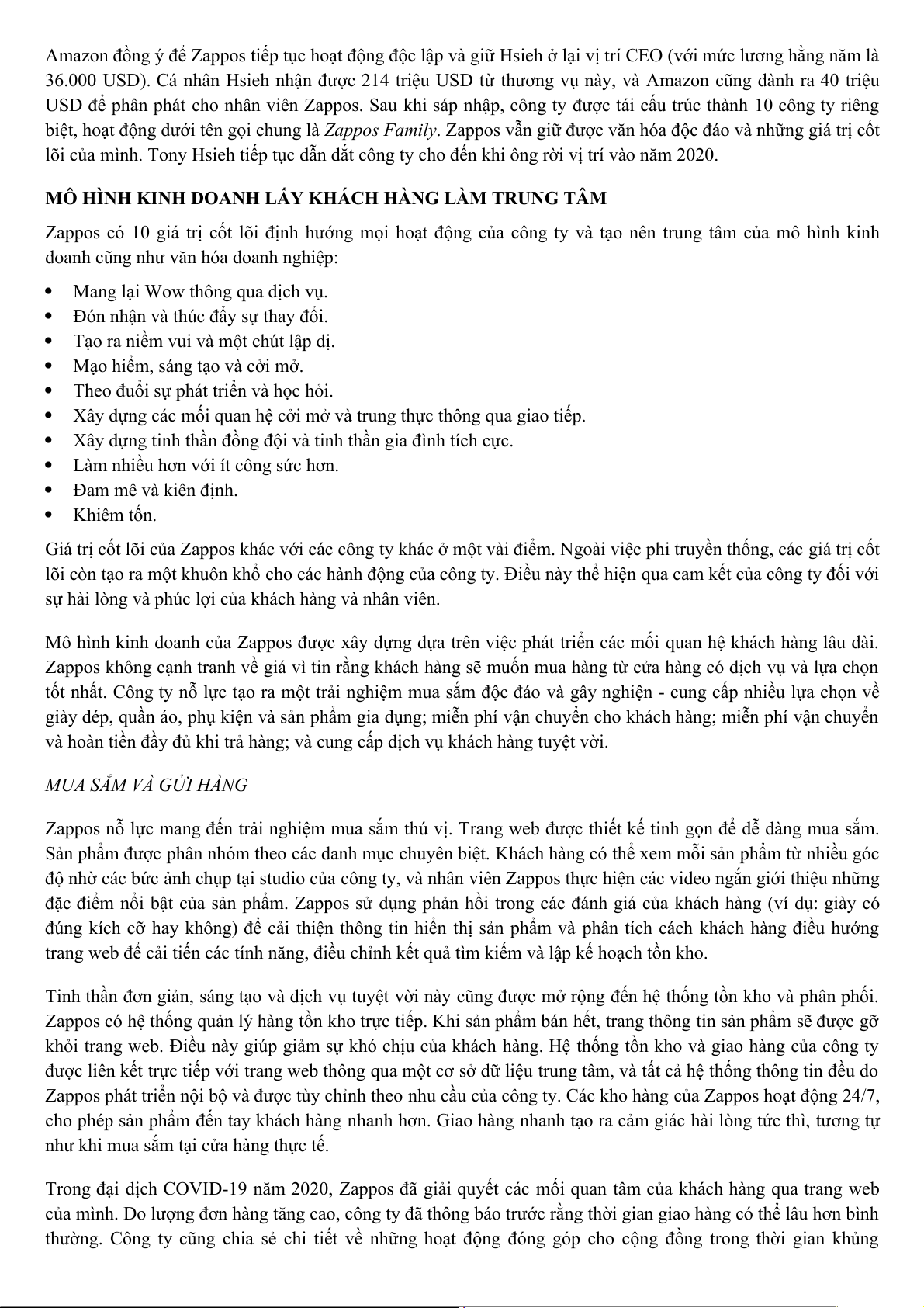 doanh độc đáo của họ. Tiếp theo, phân tích văn hóa doanh nghiệp và cách văn hóa đó ảnh hưởng đến mối quan