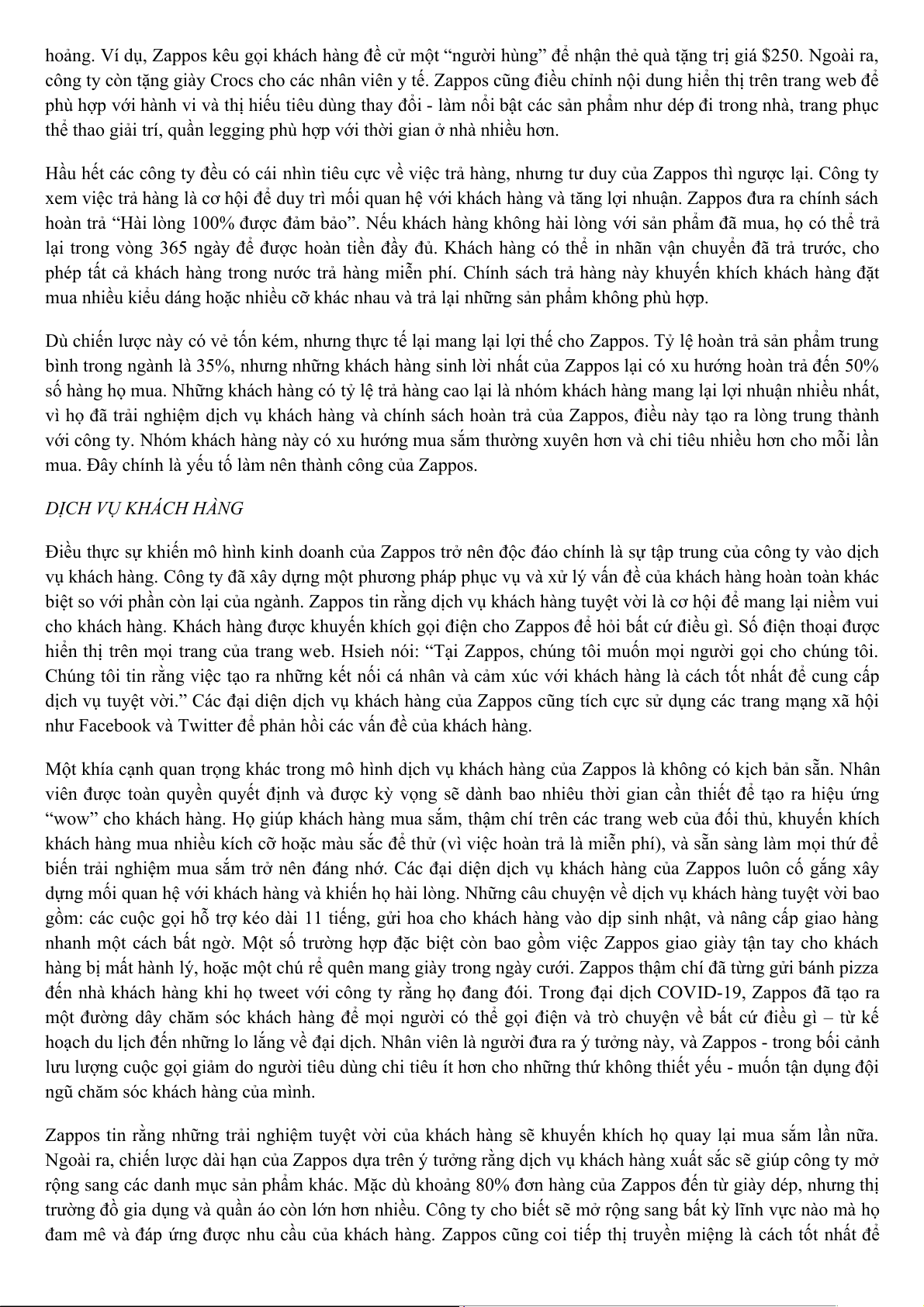 xem việc trả hàng là cơ hội để duy trì mối quan hệ với khách hàng và tăng lợi nhuận. Zappos đưa ra chính sách
