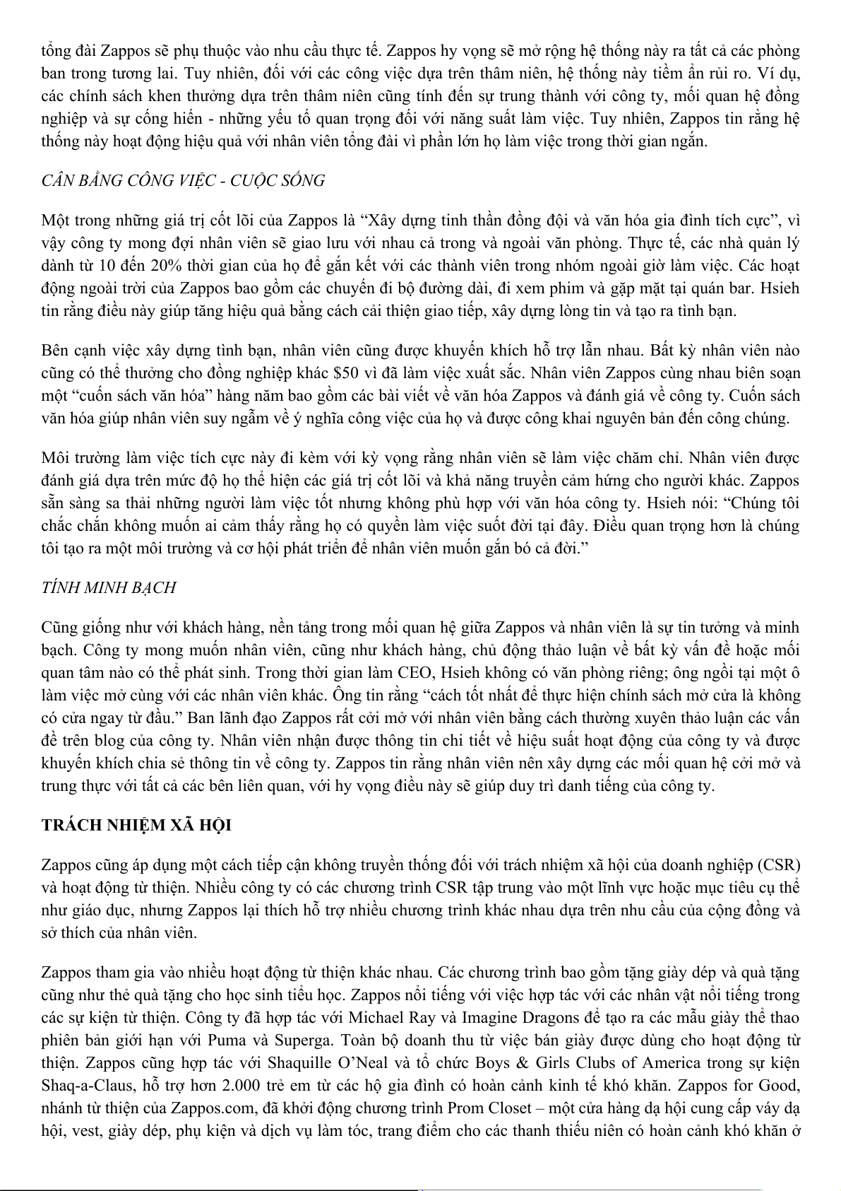 sắc riêng của Zappos. Mặc dù nhiều nhân viên đã rời công ty, Zappos tin rằng những thay đổi này là đúng đắn